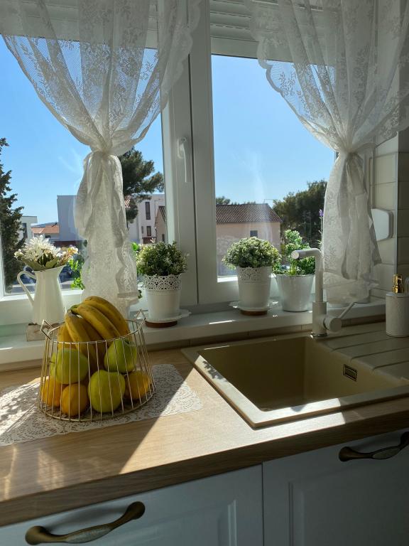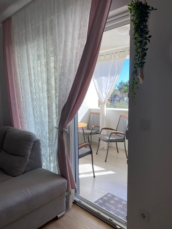 Uživajte u svom odmoru u Brodarici kod Šibenika, u ovom novo namještenom i uređenom apartmanu, koji se nalaze na prvom katu u zgradi od 5 stambenih jedinica, svega 100m. od mora i plaže. Apartman sadrže dvije spavaće sobe s bračnim krevetom, te također imaju i dodatni ležaj na garnituri u dnevnom boravku za jednu osobu. Može smjestiti 5 osoba. Ako putujete s manjom djecom, dječji krevetić je dostupan na zahtjev. Apartman je opremljen SAT-TV-om u dnevnom boravku, klima-uređajen u dnevnom boravku kao i u sobama, Wi-Fi (WLan) internet priključkom, te perilicom za rublje. U kuhinji se nalazi pribor i posuđe za pripremu i serviranje hrane, štednjak, frižider s odjeljkom za zamrzavanje, i perilica posuđa. U kupaonici s tuš kabinom na raspolaganju gostima apartmana je sušilo za kosu. Apartman ima vlastiti balkon s natkrivenom terasom od 10m2. Posteljina, ručnici i kuhinjske krpe očekuju Vas, svježi se dostavljaju jednom tjedno. Za goste apartmana na raspolaganju je jedno parkirno mjesto.