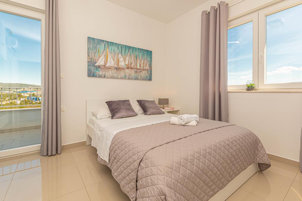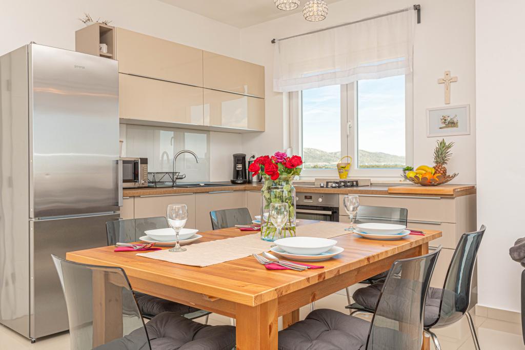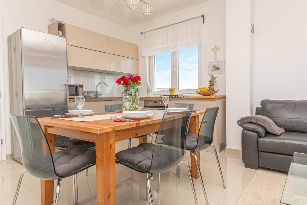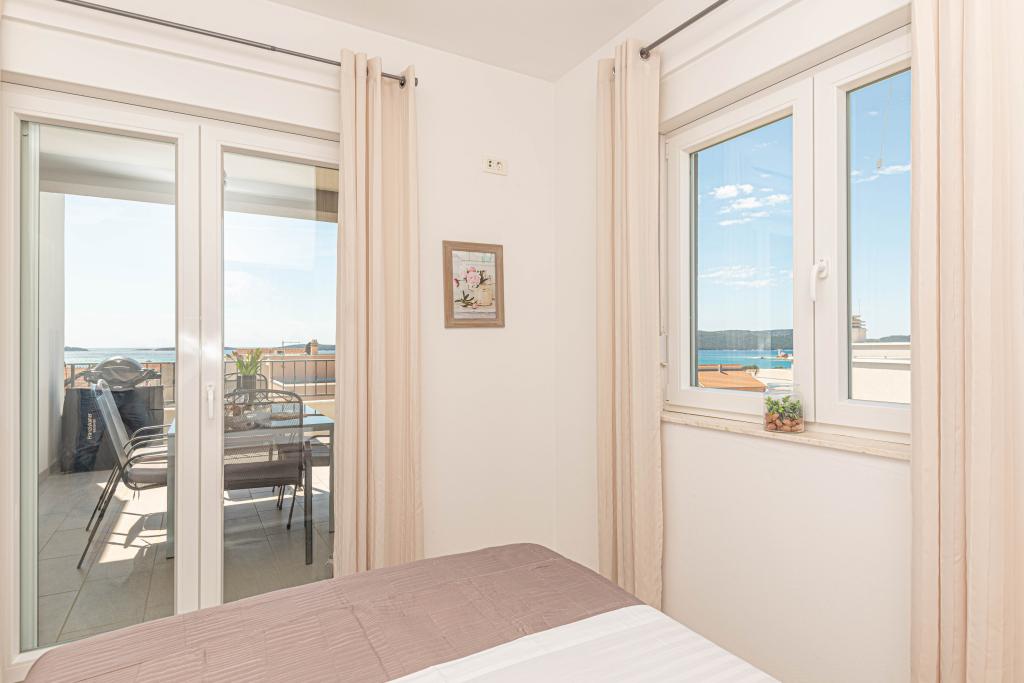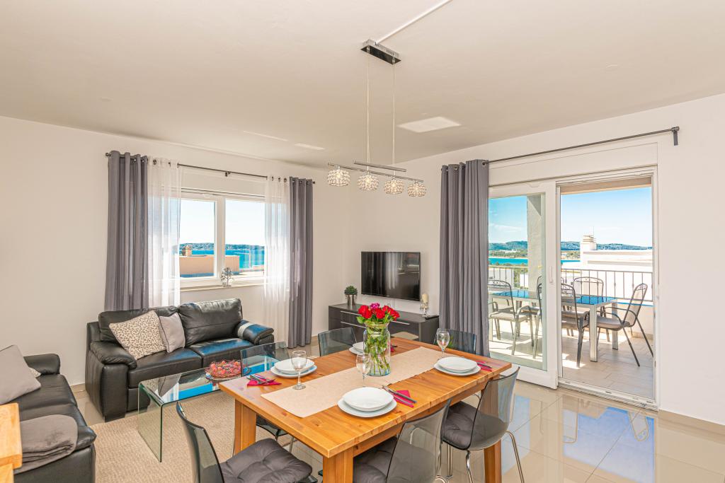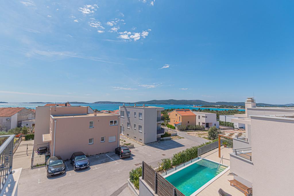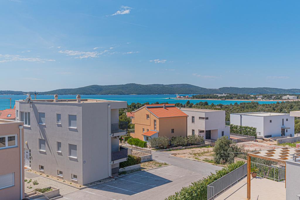 Ovaj moderni smještaj savršen je za nezaboravni obiteljski odmor uz predivan pogled na arhipelag i jedinstveni zalazak sunca. Potpuno novi apartman s terasom i pogledom na more uključuje 3 spavaće sobe, dnevni boravak, TV ravnog ekrana, opremljenu kuhinju i 2 kupaonice s tuš kabinom. Ručnici i posteljina su uključeni u apartman. Nalazi se 500m od plaže i 2 km od aqua parka Solaris te 3 km od Šibenika. U blizini postoje trgovine pizzerie i vrhunski restorani. Parking je privatni i besplatan, kao i WIFI mreža. Najbliža zračna luka je Zračna luka Split, 55 km. Apartman je u potpunosti klimatiziran. Velika terasa sa stolom i stolicama za uživanje u večernjim satima u jako mirnom dijelu Brodarice.