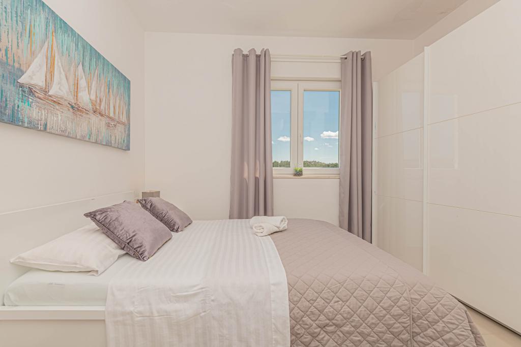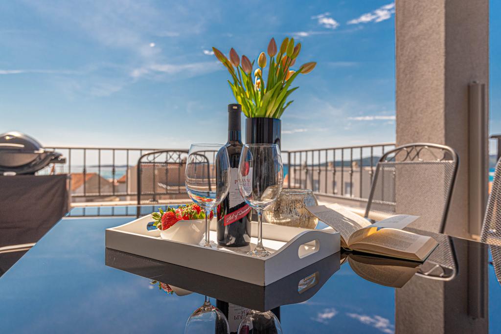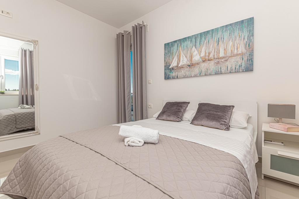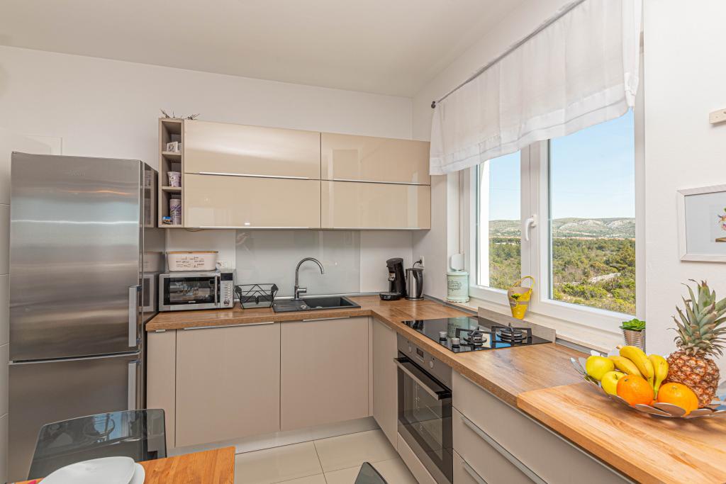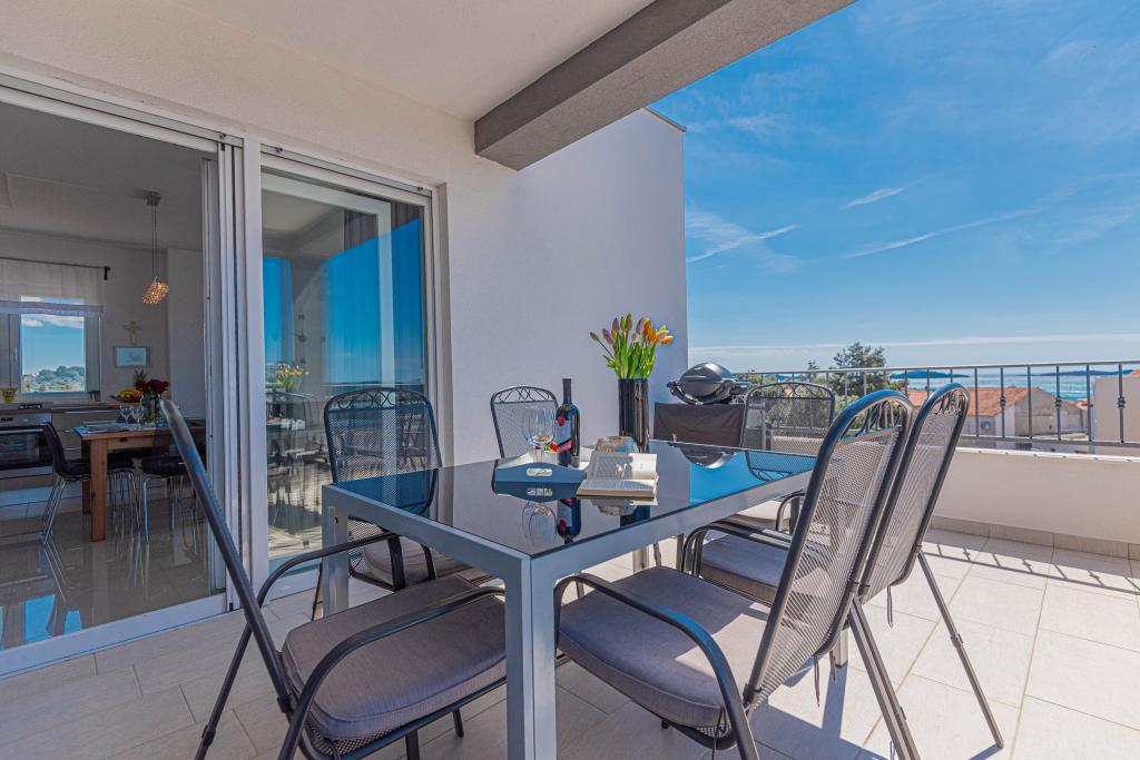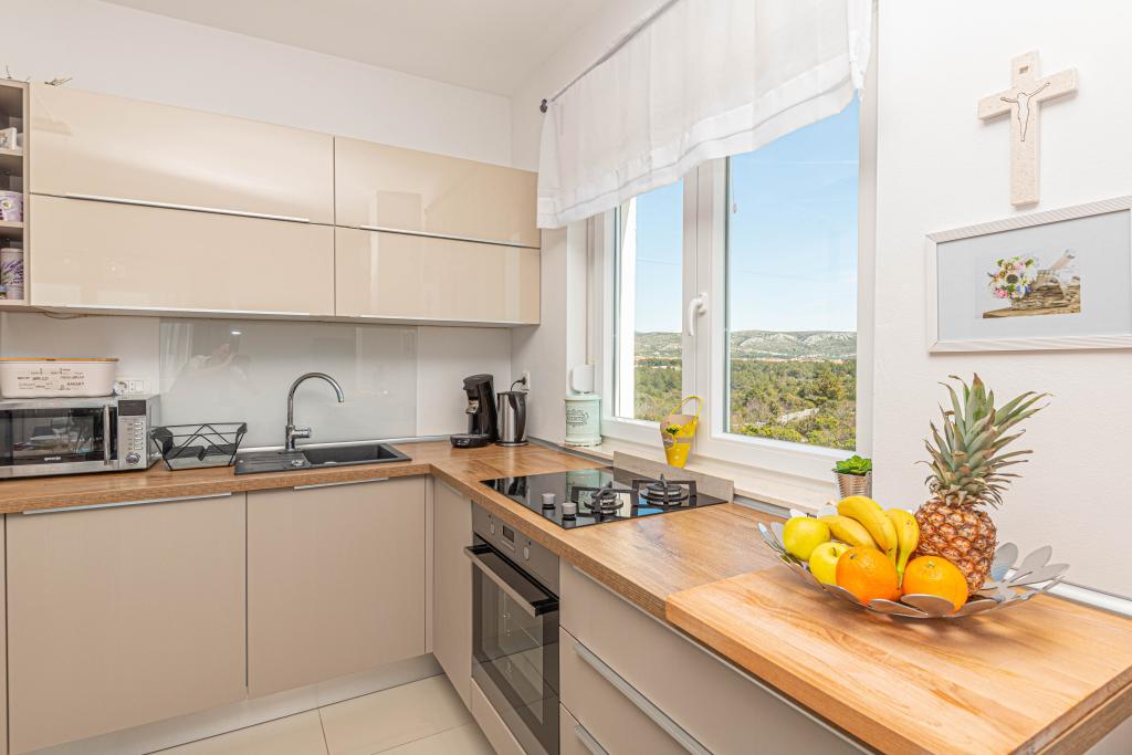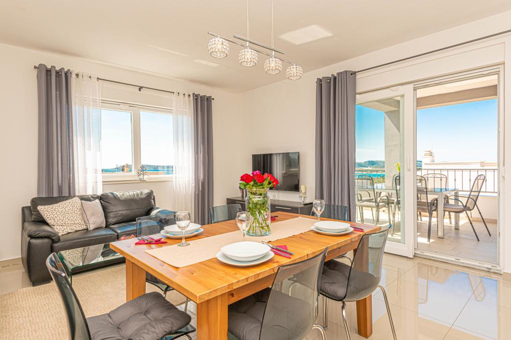 Ovaj moderni smještaj savršen je za nezaboravni obiteljski odmor uz predivan pogled na arhipelag i jedinstveni zalazak sunca. Potpuno novi apartman s terasom i pogledom na more uključuje 3 spavaće sobe, dnevni boravak, TV ravnog ekrana, opremljenu kuhinju i 2 kupaonice s tuš kabinom. Ručnici i posteljina su uključeni u apartman. Nalazi se 500m od plaže i 2 km od aqua parka Solaris te 3 km od Šibenika. U blizini postoje trgovine pizzerie i vrhunski restorani. Parking je privatni i besplatan, kao i WIFI mreža. Najbliža zračna luka je Zračna luka Split, 55 km. Apartman je u potpunosti klimatiziran. Velika terasa sa stolom i stolicama za uživanje u večernjim satima u jako mirnom dijelu Brodarice.