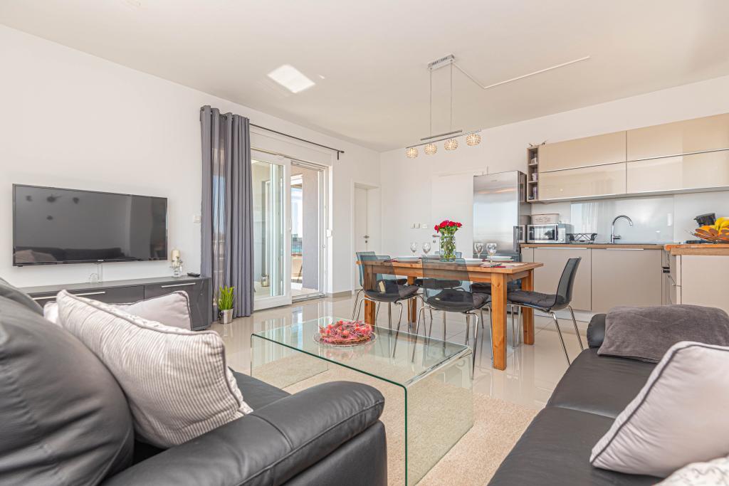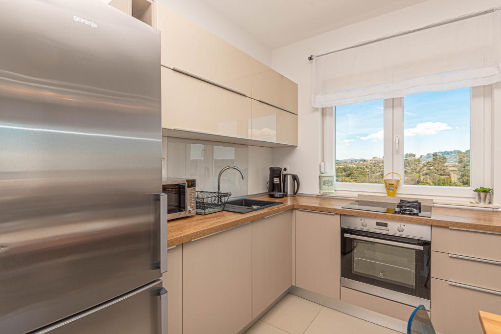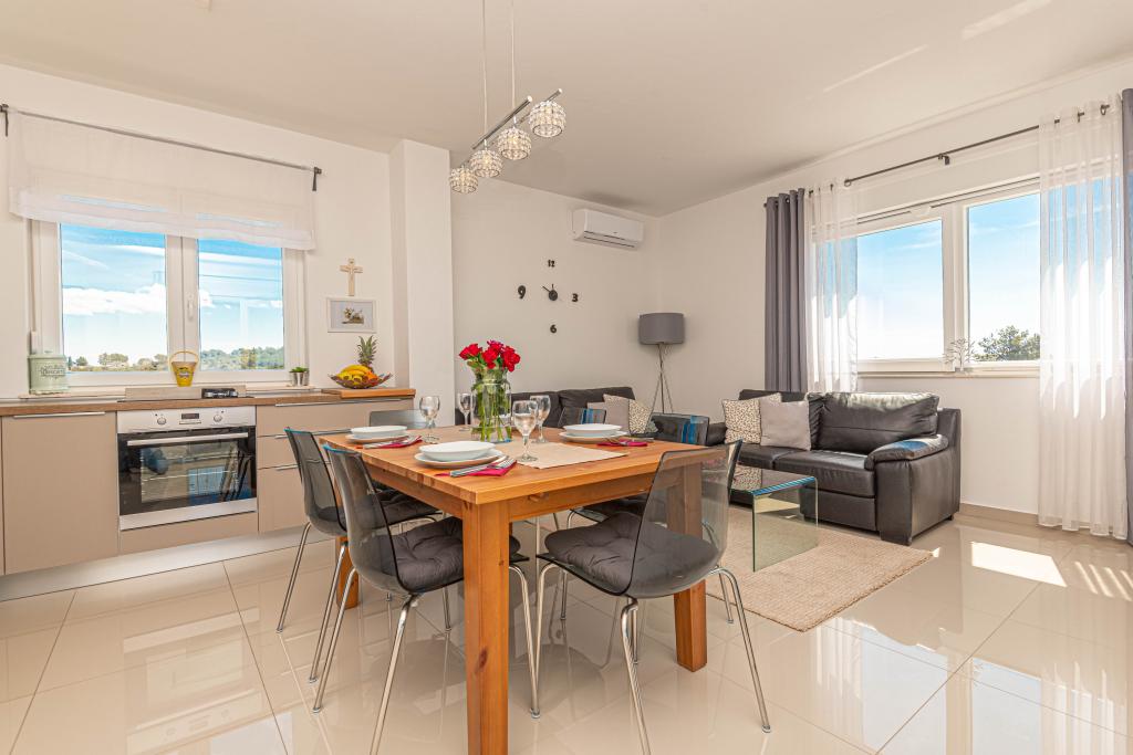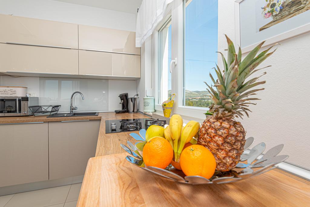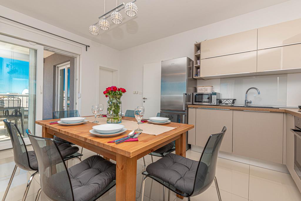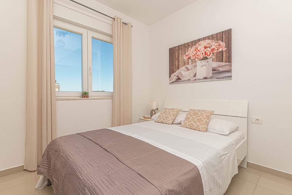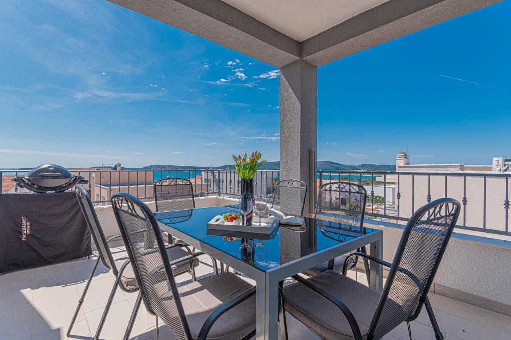Ovaj moderni smještaj savršen je za nezaboravni obiteljski odmor uz predivan pogled na arhipelag i jedinstveni zalazak sunca. Potpuno novi apartman s terasom i pogledom na more uključuje 3 spavaće sobe, dnevni boravak, TV ravnog ekrana, opremljenu kuhinju i 2 kupaonice s tuš kabinom. Ručnici i posteljina su uključeni u apartman. Nalazi se 500m od plaže i 2 km od aqua parka Solaris te 3 km od Šibenika. U blizini postoje trgovine pizzerie i vrhunski restorani. Parking je privatni i besplatan, kao i WIFI mreža. Najbliža zračna luka je Zračna luka Split, 55 km. Apartman je u potpunosti klimatiziran. Velika terasa sa stolom i stolicama za uživanje u večernjim satima u jako mirnom dijelu Brodarice.