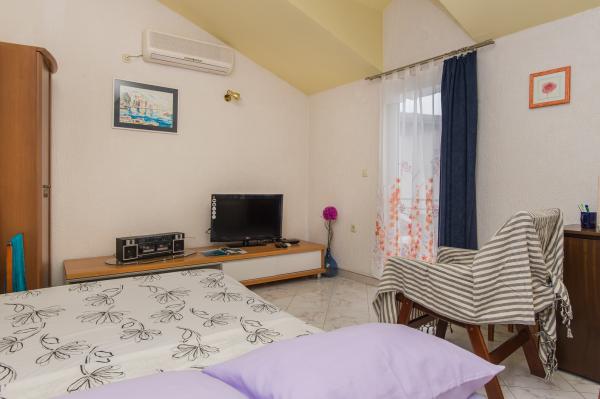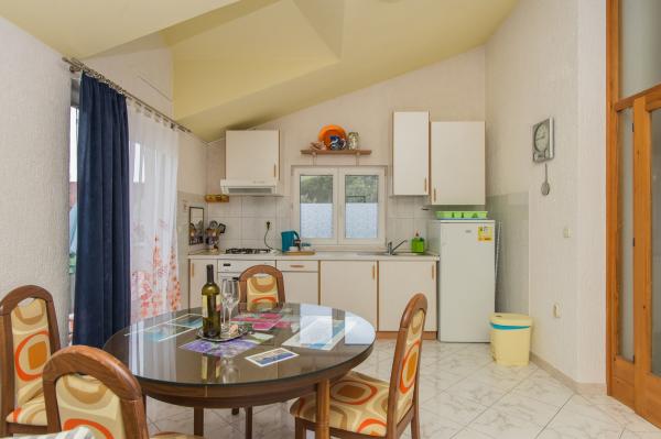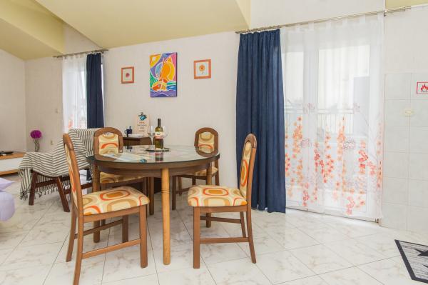 Lijepo održavan, prostran apartman, udaljen je samo nekoliko minuta hoda do plaže, pekarnice, restorana, trgovine...Parking je besplatno u dvorištu, u hladovini, ulaz je zasebno, apartman ima svoj balkon, odvojeno spavaću sobu, kuhinju sa posuđem, u dnevnom dijelu nalazi se širok ležaj na razvlačenje za dvije osobe, balkon... Klima, sat-TV, neograničeni pristup internetu su besplatno. . Posteljina i ručnici su u apartmanu. Dođite i uživajte u svom odmoru kod nas.... , . .