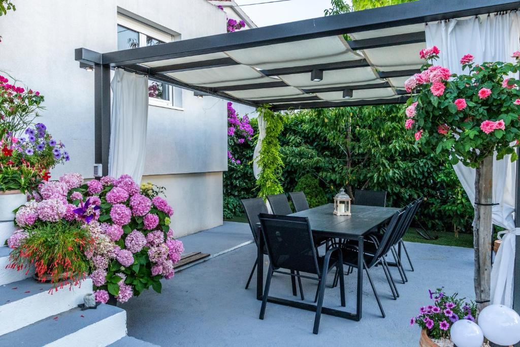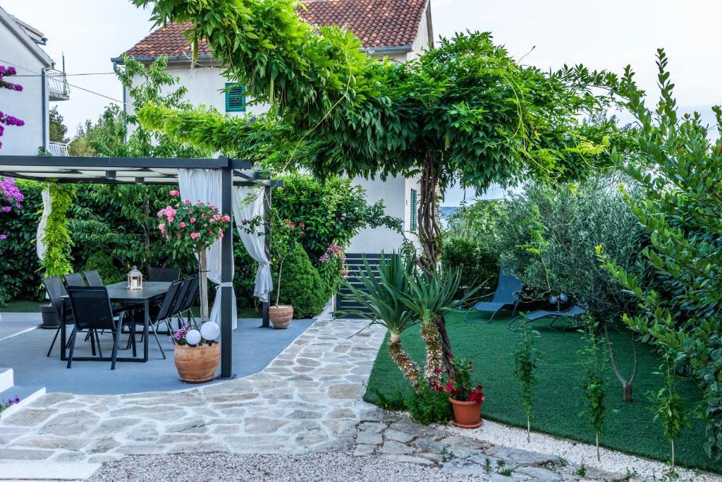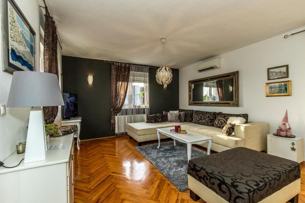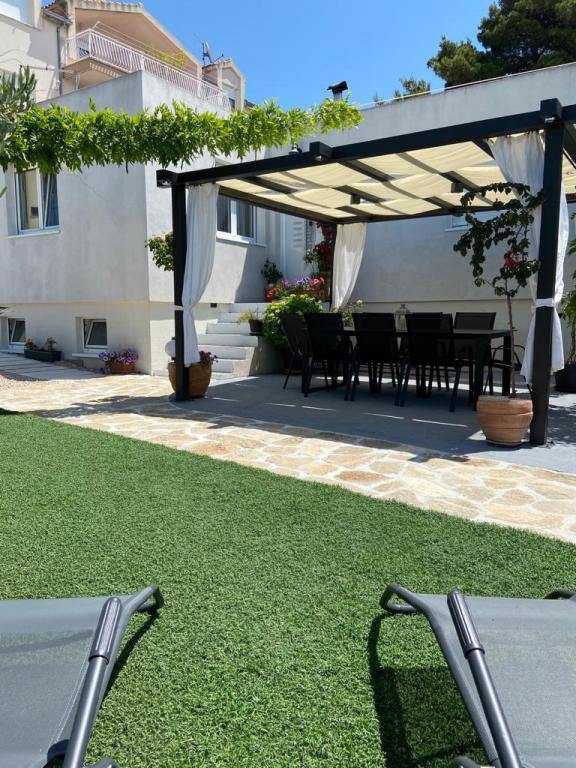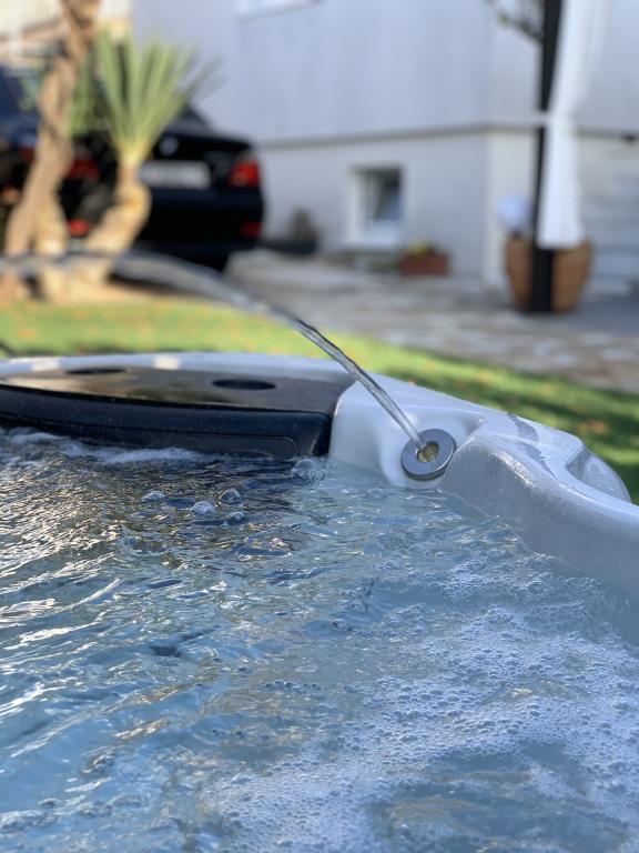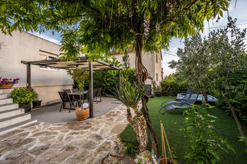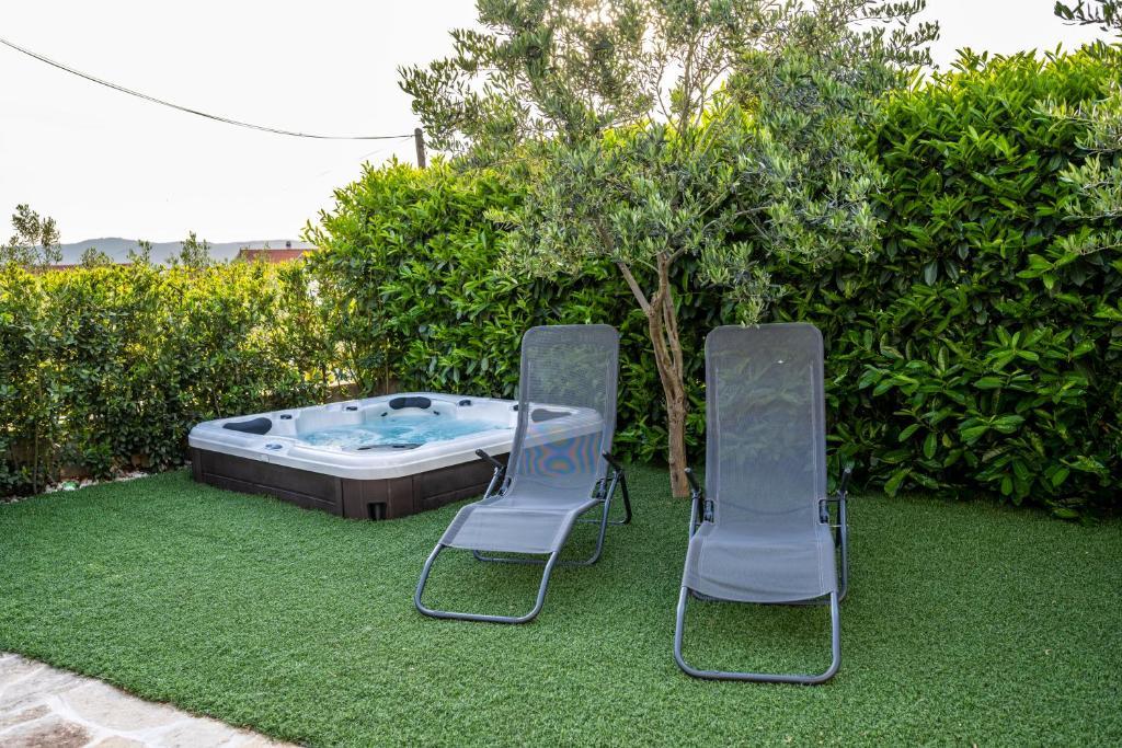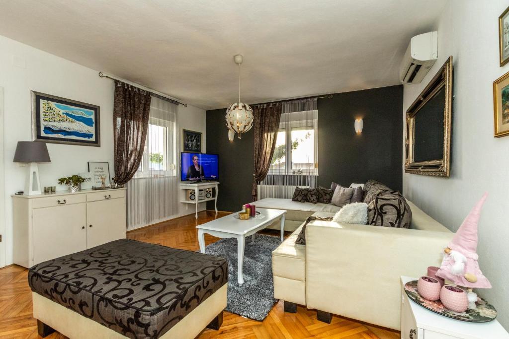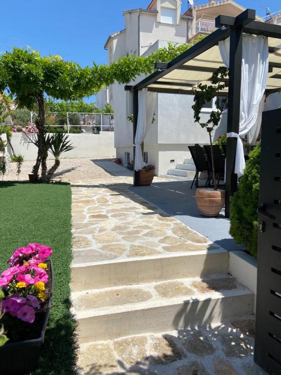 Moderan apartman od 85m2 u prizemlju kuće s 2 spavaće sobe - jedna s bračnim krevetom 180cm, druga s duplim krevetom 160cm i kaučem na razvlačenje (za 1 odraslu osobu ili dvoje djece). Na zahtjev gosta, moguće je dodati i dječji krevetić. Dnevna je soba prostrana s velikim kaučem na razvlačenje za još 2 osobe, blagovaonicom, modernom kuhinjom s perilicom posuđa, hladnjakom sa zamrzivačem, pećnicom, štednjakom, svim potrebnim aparatima i posuđem, te blagovaonicom. Velika kupaonica s kadom, a dostupna je i perilica rublja. Terasa ispred kuće s natkrivenom sjenicom i stolom sa stolicama, jacuzzijem i ležaljkama, te roštiljem u vrtu. Besplatan parking za dva auta. Besplatan wi-fi. Klimatiziran boravak i obje sobe. Plaža je udaljena 150m niz ulicu. 100m od kuće nalazi se dućan. Na plaži su i 3 beach bara/kafića, jedan ima igralište za djecu u hladu. Solaris beach resort cca. 1km od kuće s plažom, restoranima, aquaparkom i sadržajima za djecu i odrasle.