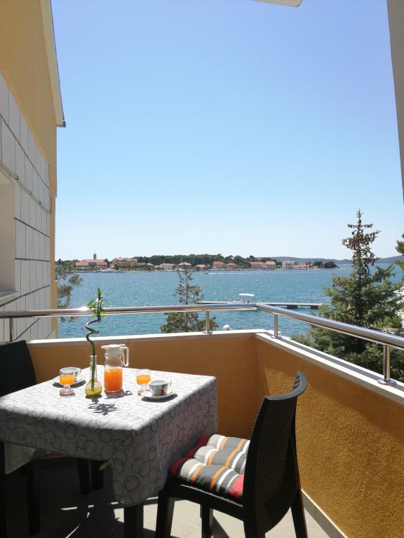 Naši apartmani smješteni su prvi red do mora u prekrasnoj uvali u Brodarici koja pruža pogled na najmanji otok na Jadranu - Krapanj. Nudimo 2 studio apartmana koji sadrže potpuno opremljenu kuhinju, kupaonicu s tušem, besplatan internet i parking te mogućnost korištenja roštilja. Također posjedujemo i dodatni vez za brod. U neposrednoj blizini nalaze se brojni caffe barovi, pizzerije, trgovine te restorani. Također u krugu od 100m nalazi se doktorska ambulanta, poštanski ured, pristanište za trajekt koji redovito vozi do otoka Krapnja te autobusna stanica za grad Šibenik. Idealna početna stanica za obližnje nacionalne parkove Krka i Kornati te za grad Šibenik koji nudi bogatu kulturu i razne kulturno-povijesne spomenike. Ako se odlučite za naše apartmane sigurni smo da ćete provesti ugodan i nezaboravan odmor.