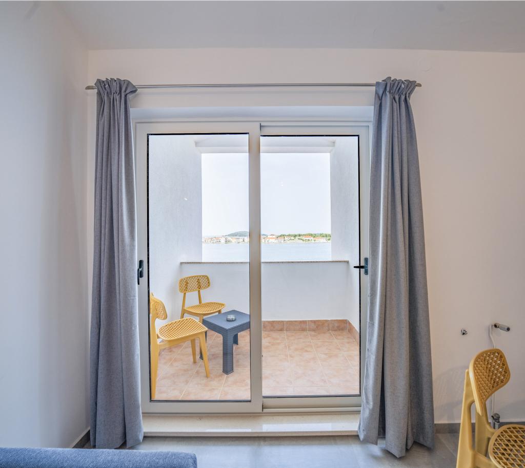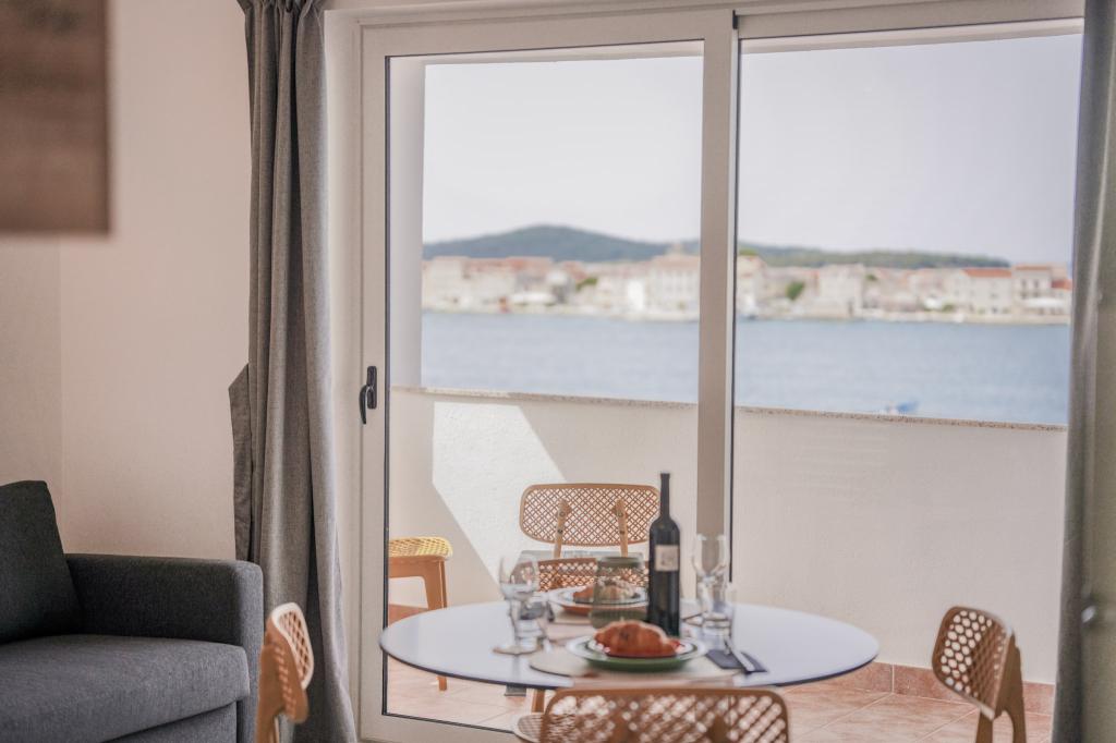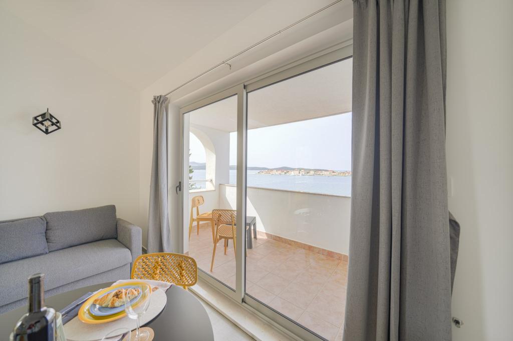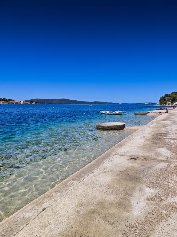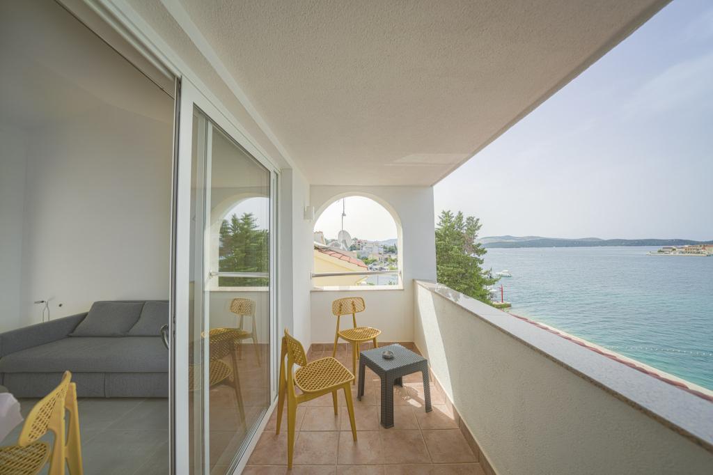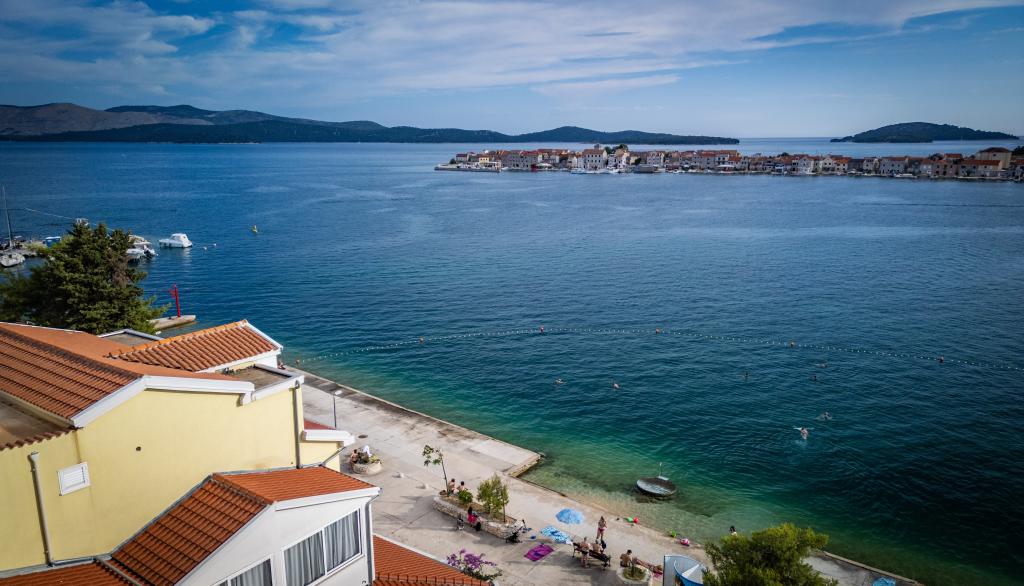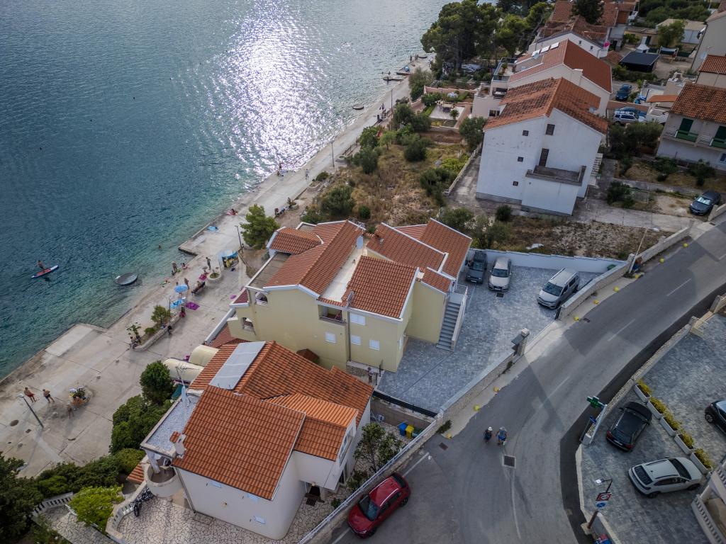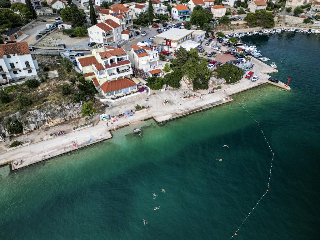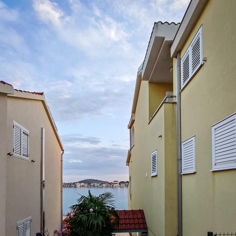 Moderno opremljeni i novo uređeni apartmani, prvi red do mora u samom središtu mjesta. Samo nekoliko desetaka metara do trgovine, apoteke, autobusne stanice, liječnika, trajekta za otok Krapanj. U dvorištu osigurano po jedno parkirno mjesto za svaki apartman te dvije ležaljke na terasi odmah iznad plaže. Miran kvart bez noćnih klubova i sl.