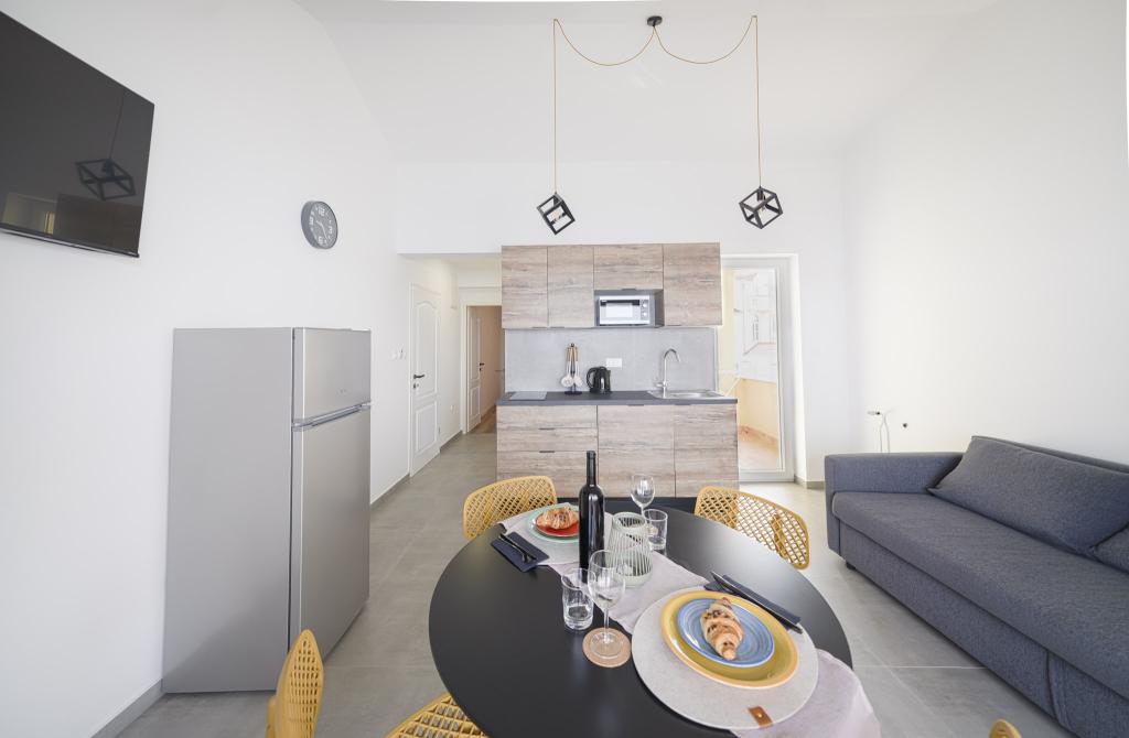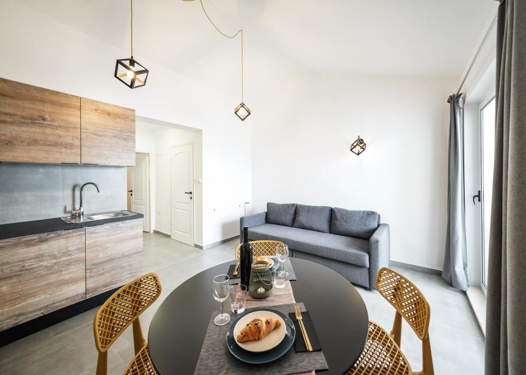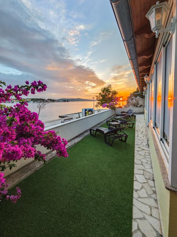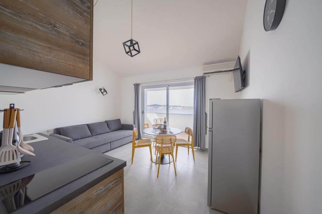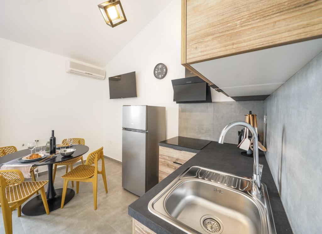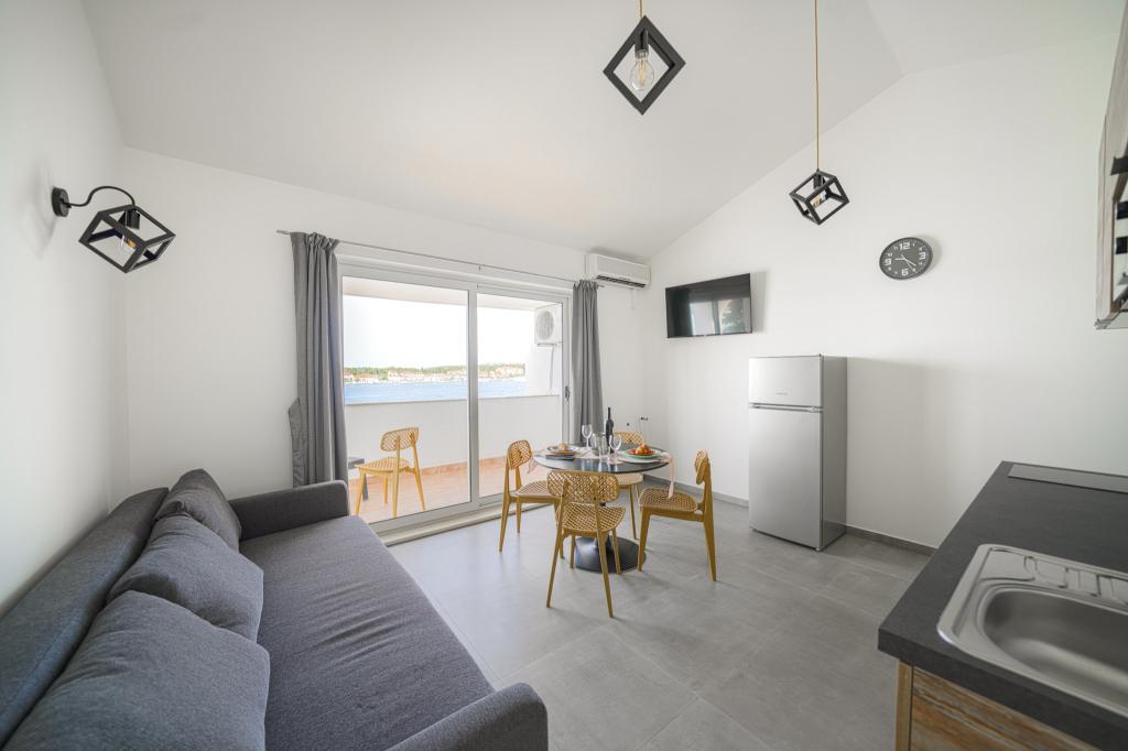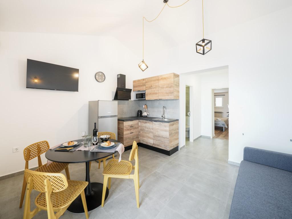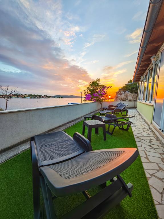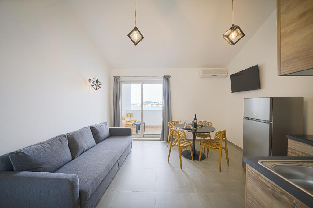 Moderno opremljeni i novo uređeni apartmani, prvi red do mora u samom središtu mjesta. Samo nekoliko desetaka metara do trgovine, apoteke, autobusne stanice, liječnika, trajekta za otok Krapanj. U dvorištu osigurano po jedno parkirno mjesto za svaki apartman te dvije ležaljke na terasi odmah iznad plaže. Miran kvart bez noćnih klubova i sl.