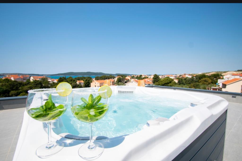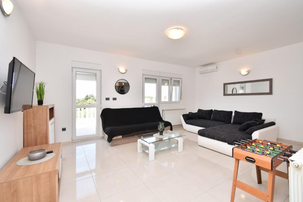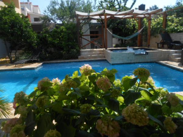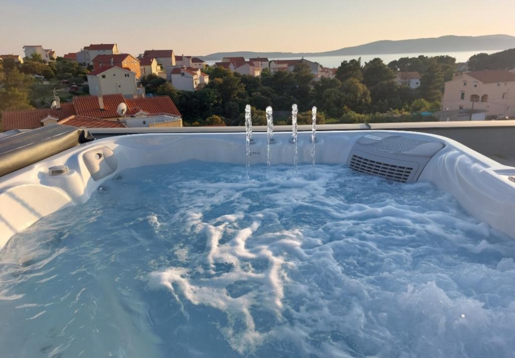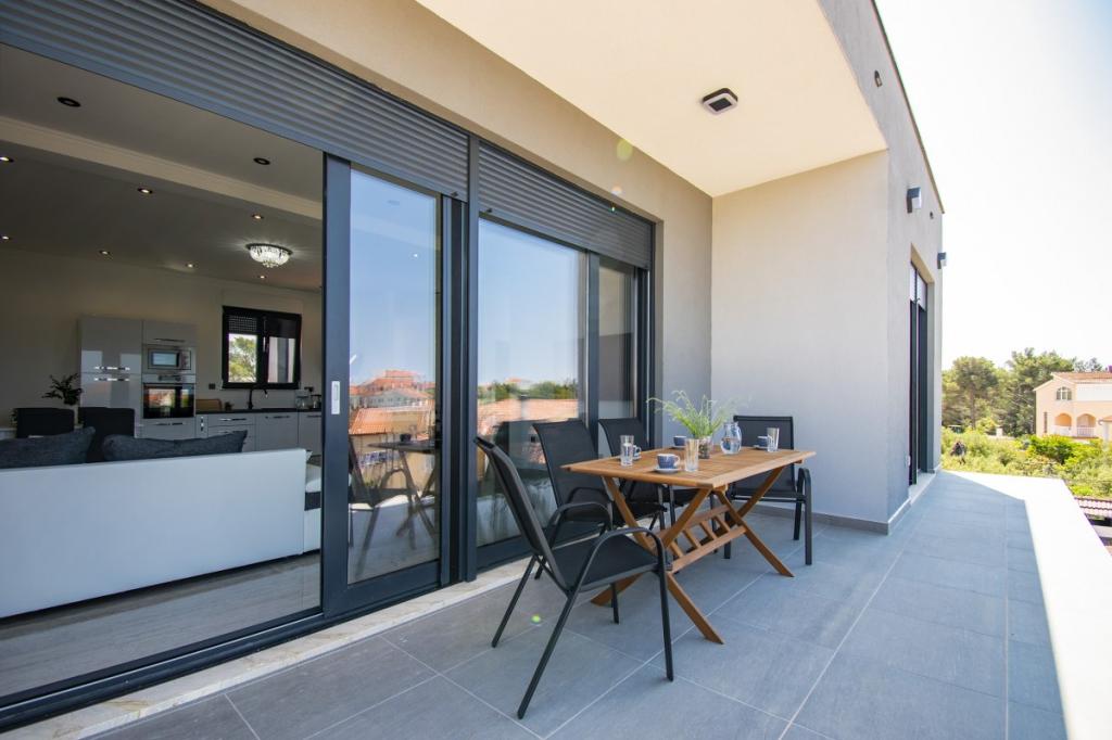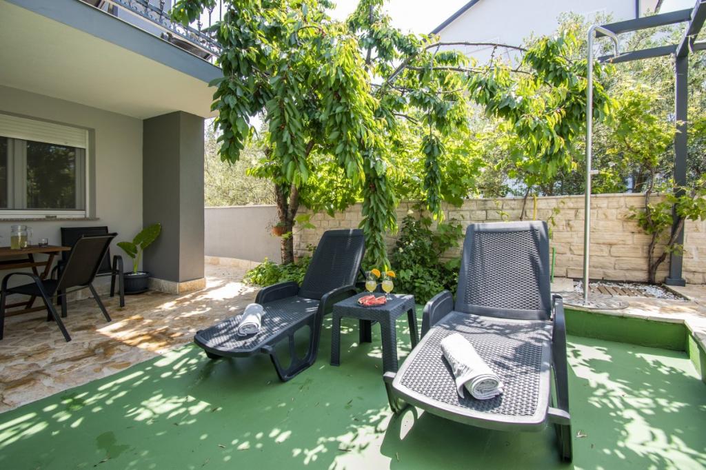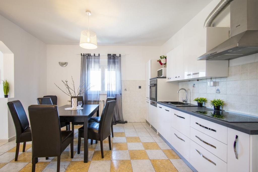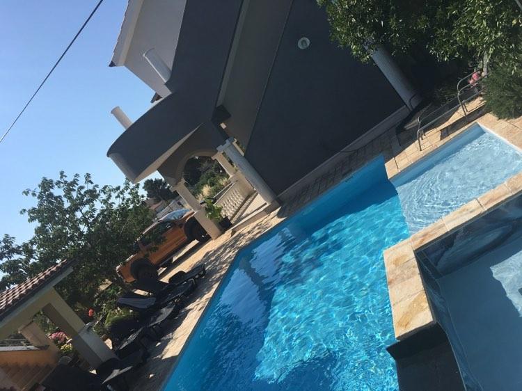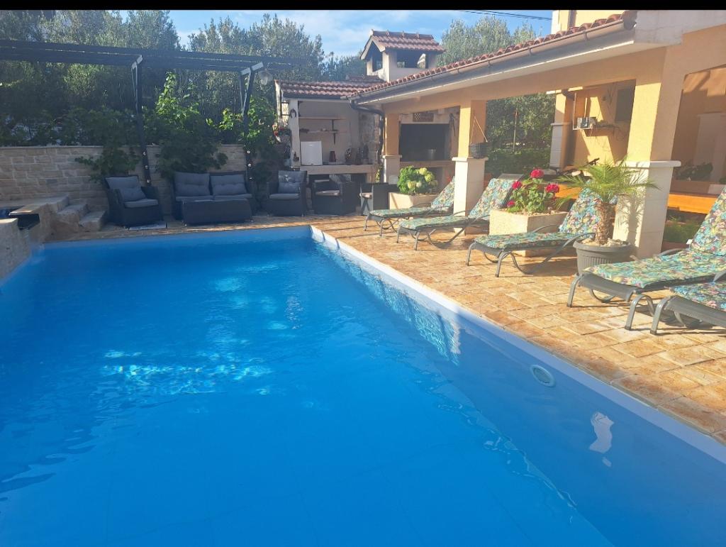 Kuća za 10 osoba sa bazenom i jacuzzijem nalazi se u mirnom predjelu Brodarice okružena sa dosta zelenila i cvijeća. Kuća ima tri apartmana. U prizemlju se nalazi novouređen luksuzno sređen s moderno opremljenom kuhinjom ,sobom ,saunom i luksuzno sređenom kupaonom ima oko 100m2. Na katu se nalazi apartman sa dvije spavaće sobe, moderno opremljenom kuhinjom i kupaonom, apartman ima oko 90 m2,terasa je prostrana oko45m2. Treći apartman je luksuzno sređen oko 100m2 ima veliki dnevni boravak sa , kompletno opremljenu kuhinju, veliku sobu sa televizijom i klimom ,apartman ima i saunu. na krovu se nalazi jaccuzi sa velikom terasom . svaki apartman ima klimu i svaka soba također ima televiziju. Bazen je zajednički. Kuća je udaljena od mora 5-6 minuta hoda.