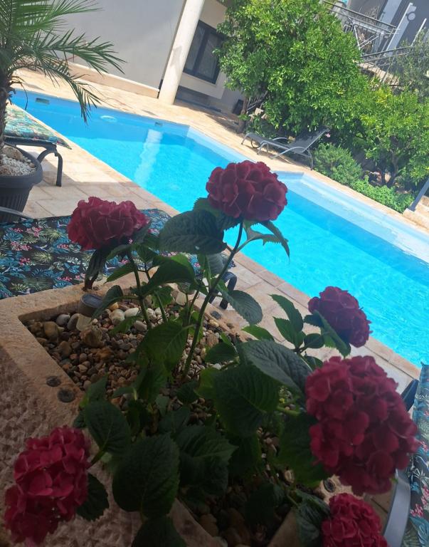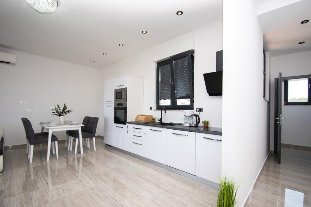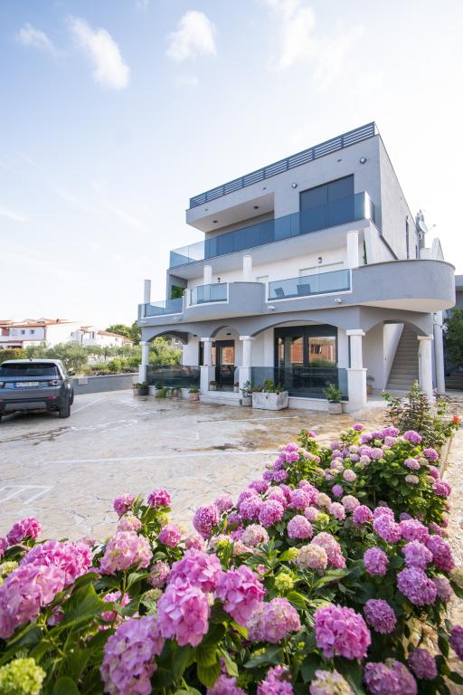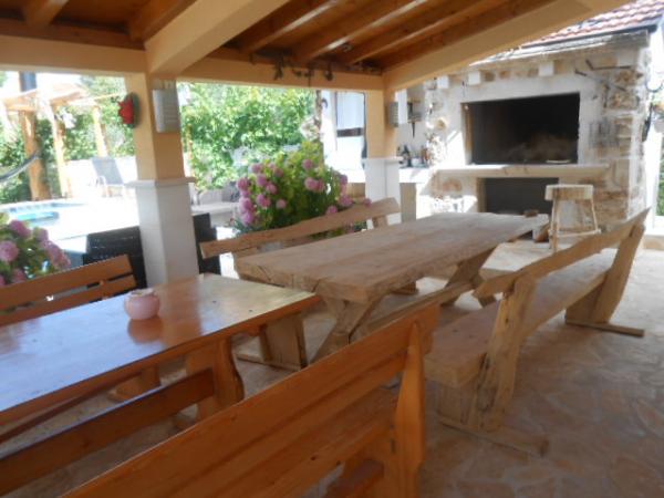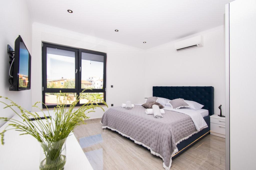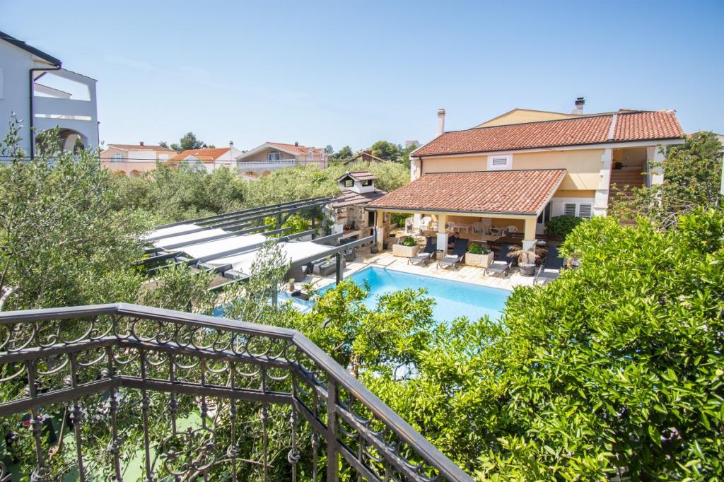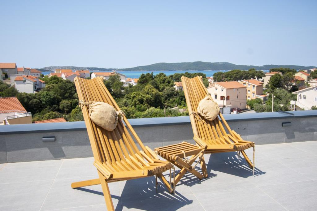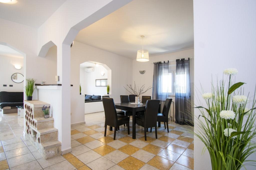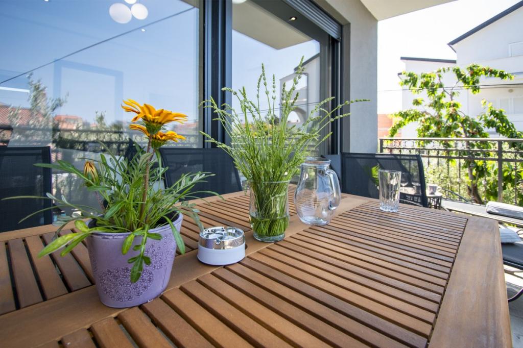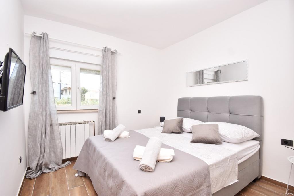 Kuća za 10 osoba sa bazenom i jacuzzijem nalazi se u mirnom predjelu Brodarice okružena sa dosta zelenila i cvijeća. Kuća ima tri apartmana. U prizemlju se nalazi novouređen luksuzno sređen s moderno opremljenom kuhinjom ,sobom ,saunom i luksuzno sređenom kupaonom ima oko 100m2. Na katu se nalazi apartman sa dvije spavaće sobe, moderno opremljenom kuhinjom i kupaonom, apartman ima oko 90 m2,terasa je prostrana oko45m2. Treći apartman je luksuzno sređen oko 100m2 ima veliki dnevni boravak sa , kompletno opremljenu kuhinju, veliku sobu sa televizijom i klimom ,apartman ima i saunu. na krovu se nalazi jaccuzi sa velikom terasom . svaki apartman ima klimu i svaka soba također ima televiziju. Bazen je zajednički. Kuća je udaljena od mora 5-6 minuta hoda.