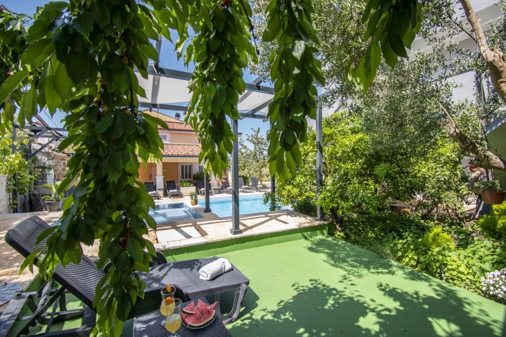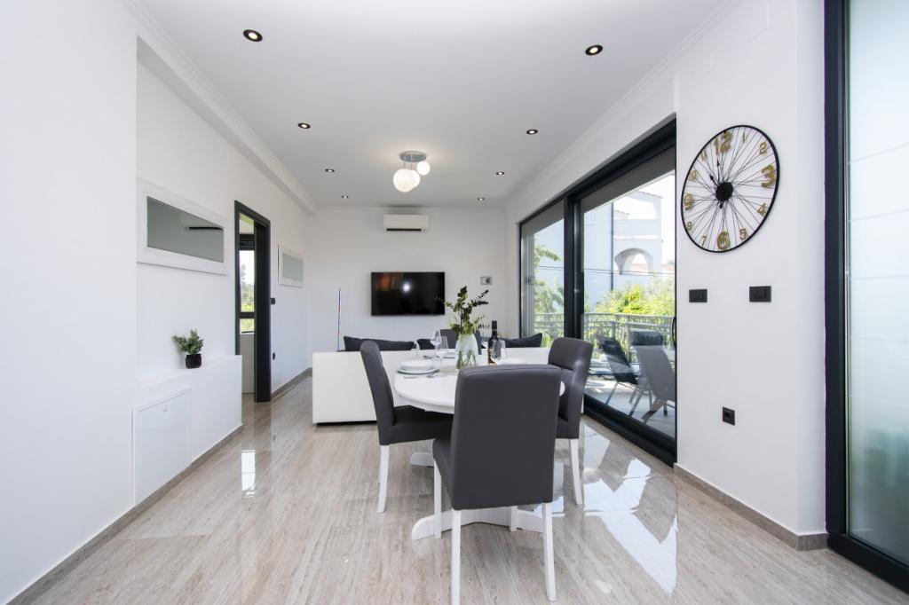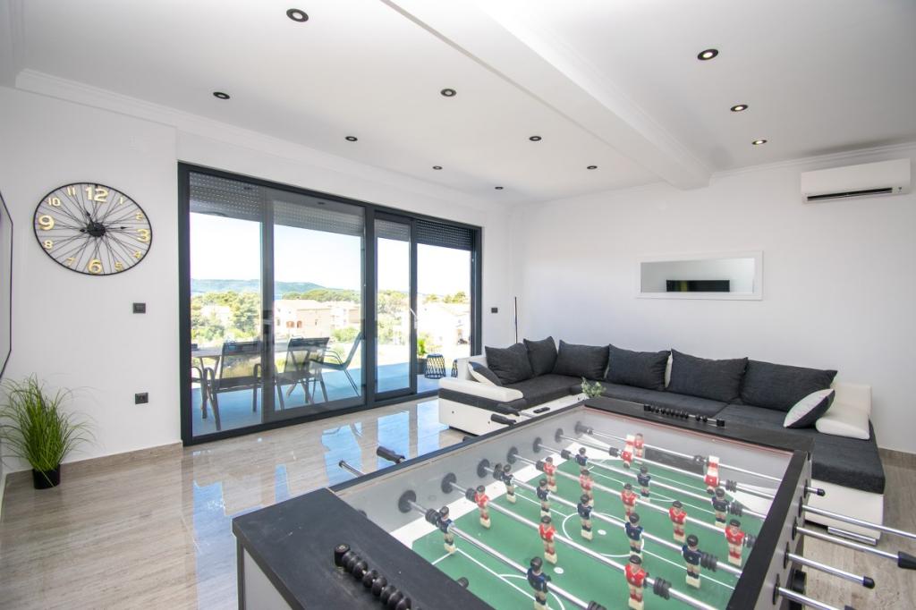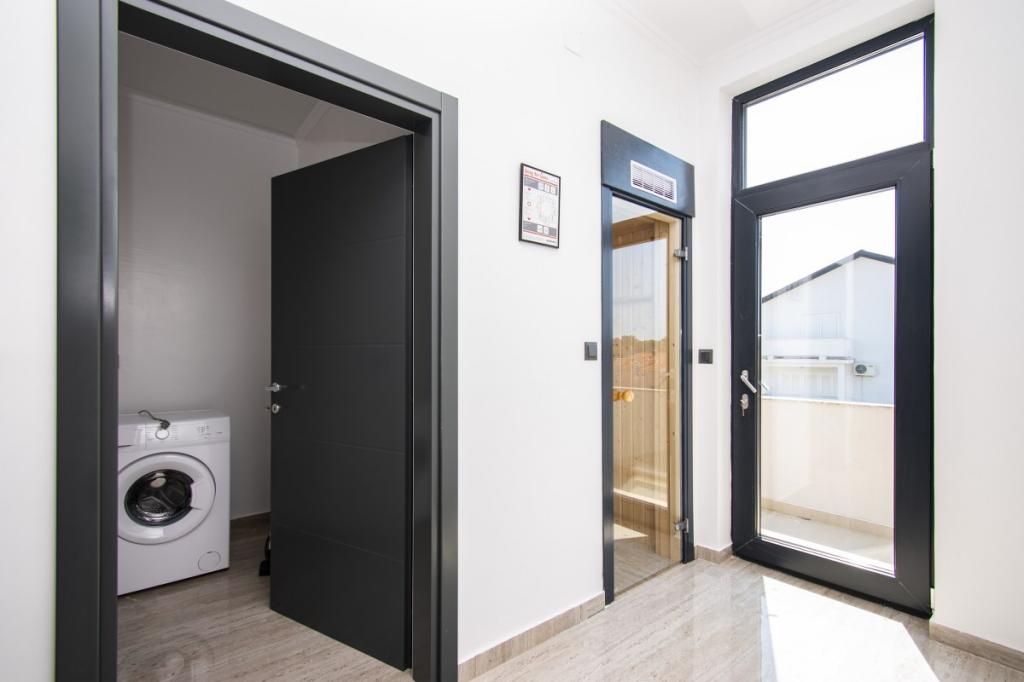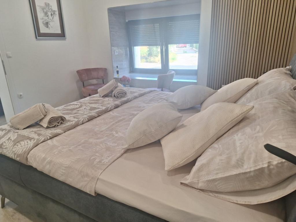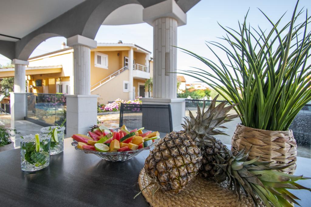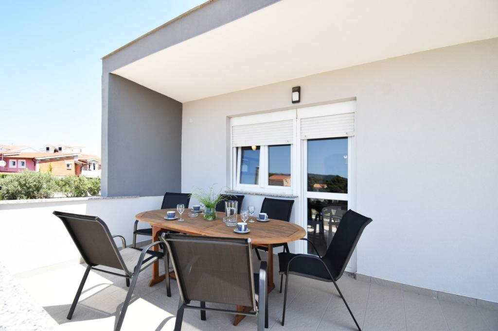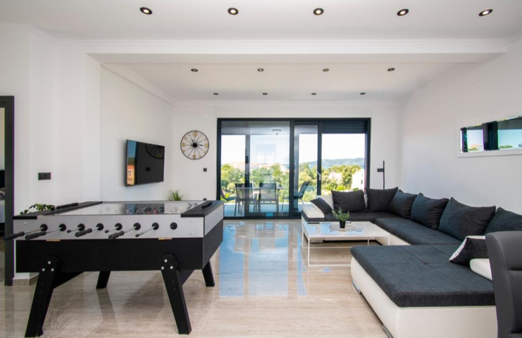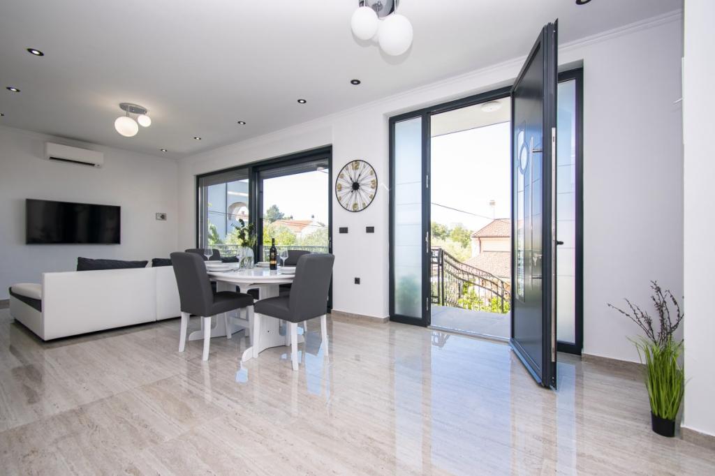 Kuća za 10 osoba sa bazenom i jacuzzijem nalazi se u mirnom predjelu Brodarice okružena sa dosta zelenila i cvijeća. Kuća ima tri apartmana. U prizemlju se nalazi novouređen luksuzno sređen s moderno opremljenom kuhinjom ,sobom ,saunom i luksuzno sređenom kupaonom ima oko 100m2. Na katu se nalazi apartman sa dvije spavaće sobe, moderno opremljenom kuhinjom i kupaonom, apartman ima oko 90 m2,terasa je prostrana oko45m2. Treći apartman je luksuzno sređen oko 100m2 ima veliki dnevni boravak sa , kompletno opremljenu kuhinju, veliku sobu sa televizijom i klimom ,apartman ima i saunu. na krovu se nalazi jaccuzi sa velikom terasom . svaki apartman ima klimu i svaka soba također ima televiziju. Bazen je zajednički. Kuća je udaljena od mora 5-6 minuta hoda.