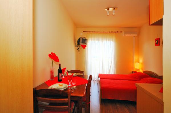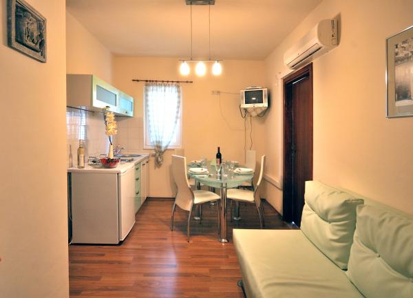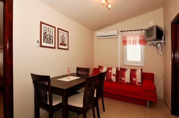 Ugodni, novouređeni apartmani, nalaze se na samom početku Brodarice, svega par minuta hoda od gradske plaže Brodarica. Nedaleko od apartmana nalazi se Nacionalni park Krka te otok Krapanj, najniži otok na Mediteranu s dugom poviješću spužarstva. Studio apartmani se sastoje od prostorije u kojoj se nalazi kuhinja, dva kreveta, odvojene kupaone, balkona ( svi osim A5 ). Apartmani pogodni za boravak 4 osobe se sastoje od 2 dvokrevetne sobe, kupaone, kuhinje-dnevnog boravka s kaučom na razvlačenje, balkona. Apartmani pogodni za boravak 2-4 osobe, se sastoje od kuhinje-dnevnog boravka s kaučom na razvlačenje, dvokrevetne sobe, kupaone, balkona ( svi osim A8 ). Svi apartmani su klimatizirani. Gostima su na raspolaganju TV, SAT, a većina smještajnih jedinica ima i balkone sa prekrasnim pogledom na more. Gosti imaju mogućnost korištenja grilla, te osigurano parking mjesto.