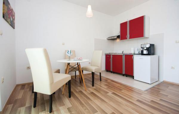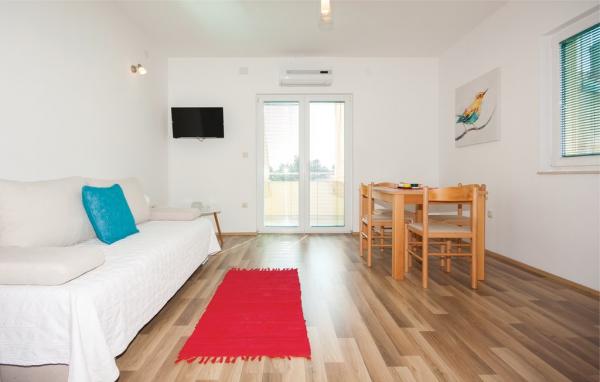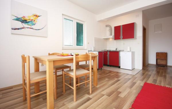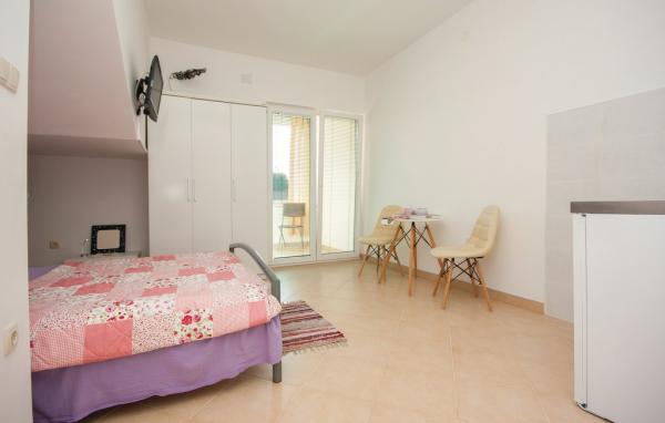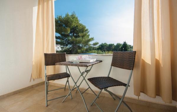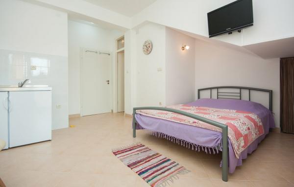 Dva apartmana na 1. katu u Brodarica II br. 1 - udaljeni samo 150 m od mora. Oba apartmani imaju TV, klimu, WC/Tus, kuhinju, hodnik, odvojenu spavacu sobu, 1 ili 2 balkona, mogucnost spavanja u dnevnoj sobi, koja je ujedno i blagovaonica. Oba apartmana imaju pogled na more. Oba su ca. 40-45 m2. Kapacitet apartmana 2-4 osobe. Studio u prizemlju sa sobom, u kojoj je mini-kuhinja, WC/Tus, klima, TV i balkon. Studio ima bracni krevet. Velicina studija 25 m2. Kapacitet 2 osobe.
