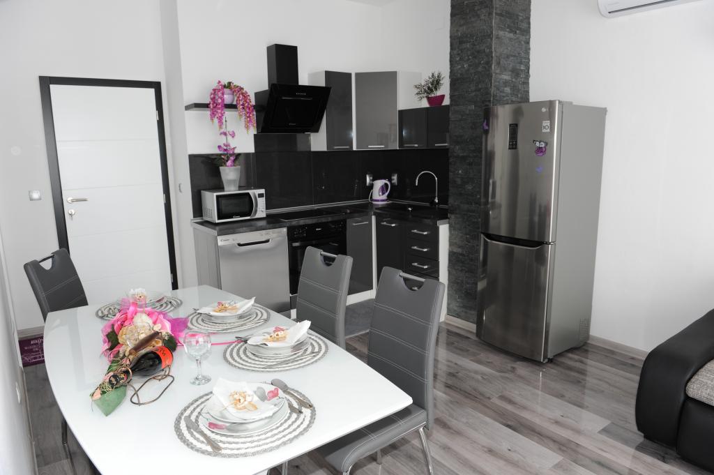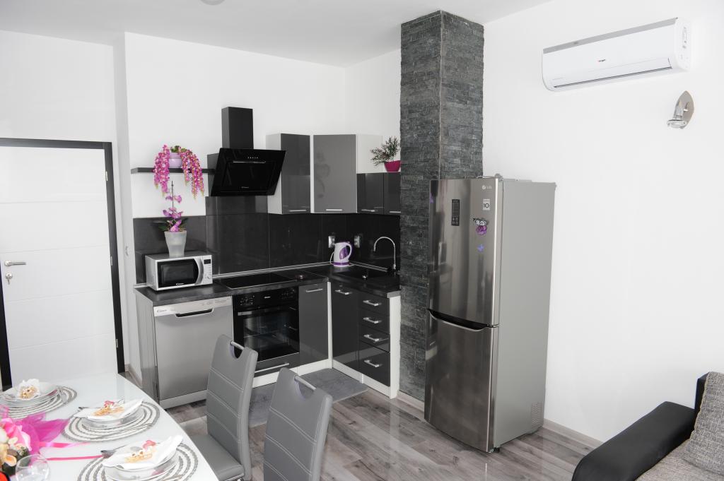 Kompletno i suvremeno opremljeni apartmani smješteni na Brodarici koja je oko 3 km udaljena od centra Šibenika. Studio apartman stavljen u funkciju 2017. godine, jedno sobni i dvosobni apartmani stavljeni u funkciju 2019. godine, dakle u potpunosti su novi. Gradska Šibenska plaža Rezalište je udaljena oko 30 metara od apartmana, ukrugu od 20-ak metara se nalazi trgovina, nekoliko beach barova, fast food, slastičarna, pekara, igrališta za košarku i odbojku, igrališta za djecu, sprave za tjelovježbu. U krugu od 3 km se nalazi trgovački centar Dalmare, Kaufland, Plodine, Lidl, Mc Donalds. .