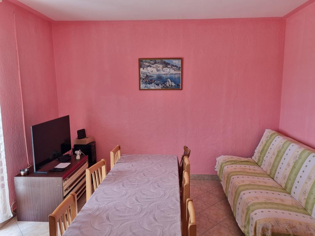 Vrlo loše iskustvo, uništili su nam dugo očekivani odmor! Prije svega, apartman je u jako lošem stanju. Istina je da smo znali da je namještaj star, ali star i održavan nije isto što i star i uništen, prljav, mastan i općenito zapušten. Previsoka cijena za takvo mjesto. Gospođa je već znala zašto nam želi naplatiti dok smo još nosili putne torbe iz auta. Kuhinja je velika, ali beskorisna, samo 2 električne ploče za kuhanje, koje morate uključiti sat vremena prije kuhanja. Pokvareni štednjak u kuhinji, pokvarena perilica posuđa, pokvaren hladnjak. Umjesto da ih maknu, stavili su druge točno ispred njih. Iz slavine prvo teče kipuća voda, tek onda je sigurno oprati ruke. Svjetla su dobra samo danju kada je vani svjetlo. Čim padne mrak i trebaju vam svjetla kao glavni izvor svjetlosti, ne rade jer ste ujedno grijali vodu ili kuhali večeru. Naravno, ni u kupaonici u to vrijeme ne možete ništa raditi, jer su električne instalacije jako loše. Dakle, kuhajte za 4 djece tijekom dana kada još nešto vidite, tuširajte se tijekom dana i palite svjetlo na telefonu navečer kada igrate karte. Što se tiče kupaonica... u jednoj je kada. Ako je napunite vodom, bit će problema. Kad ispustite vodu iz kade, ona kroz podni sifon teče natrag u kupaonicu i imate poplavu. U drugoj kupaonici je tuš, ali je postavljen iza WC-a, pa morate proći pored njega. Ali je podignut oko 40 cm uvis. Bilo nas je 6... stan je vjerojatno za 10. Ormari su beskorisni, jer vlasnici nisu imali odjeću, pa smo stvari imali na podu i gdje god je bilo malo mjesta. Stan ima 2 izlaza na balkon, ali nijedan se ne može potpuno zatvoriti. Zato smo ispred svaka vrata stavili stolicu. Kad je jedne noći bila oluja, nije bilo dovoljno stolica.
