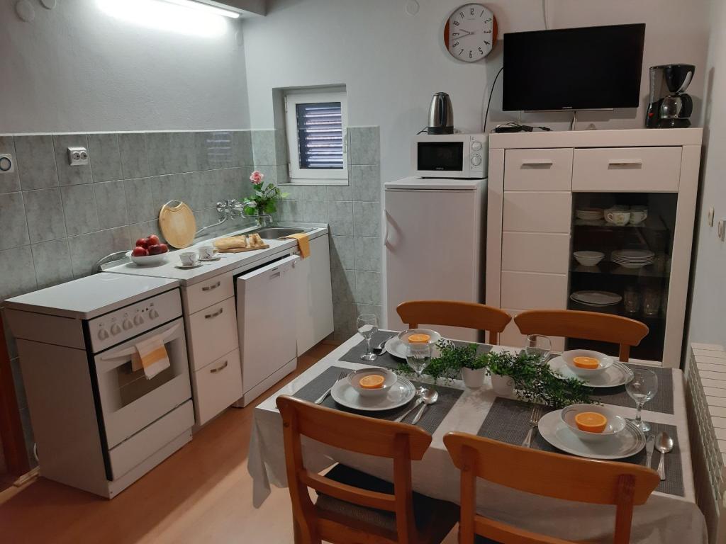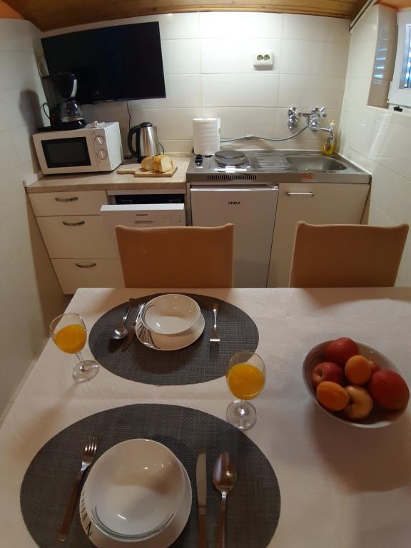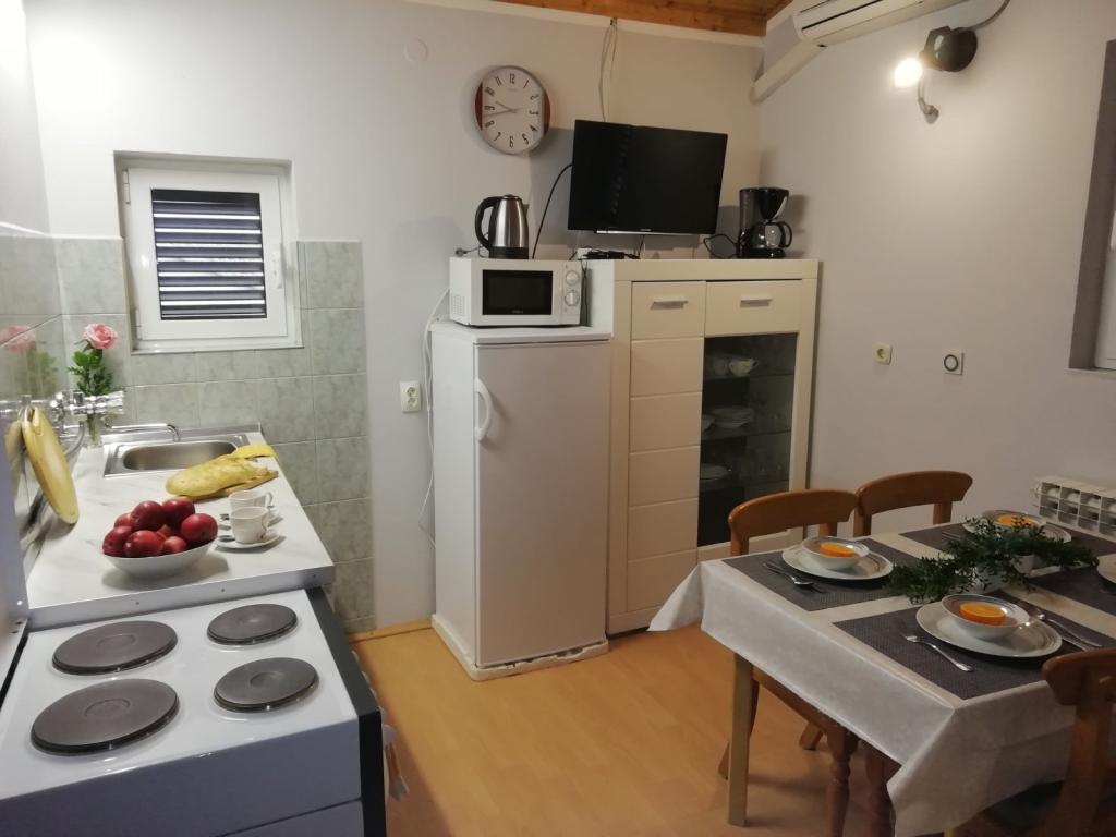 Sve naše goste u frižideru čeka piće dobrodošlice, a za najmlađe nešto slatko. Tijekom boravka rado ćemo Vas počastiti sezonskim domaćim proizvodima iz našeg vrta (smokve, grožđe, sezonsko povrće i sl.)