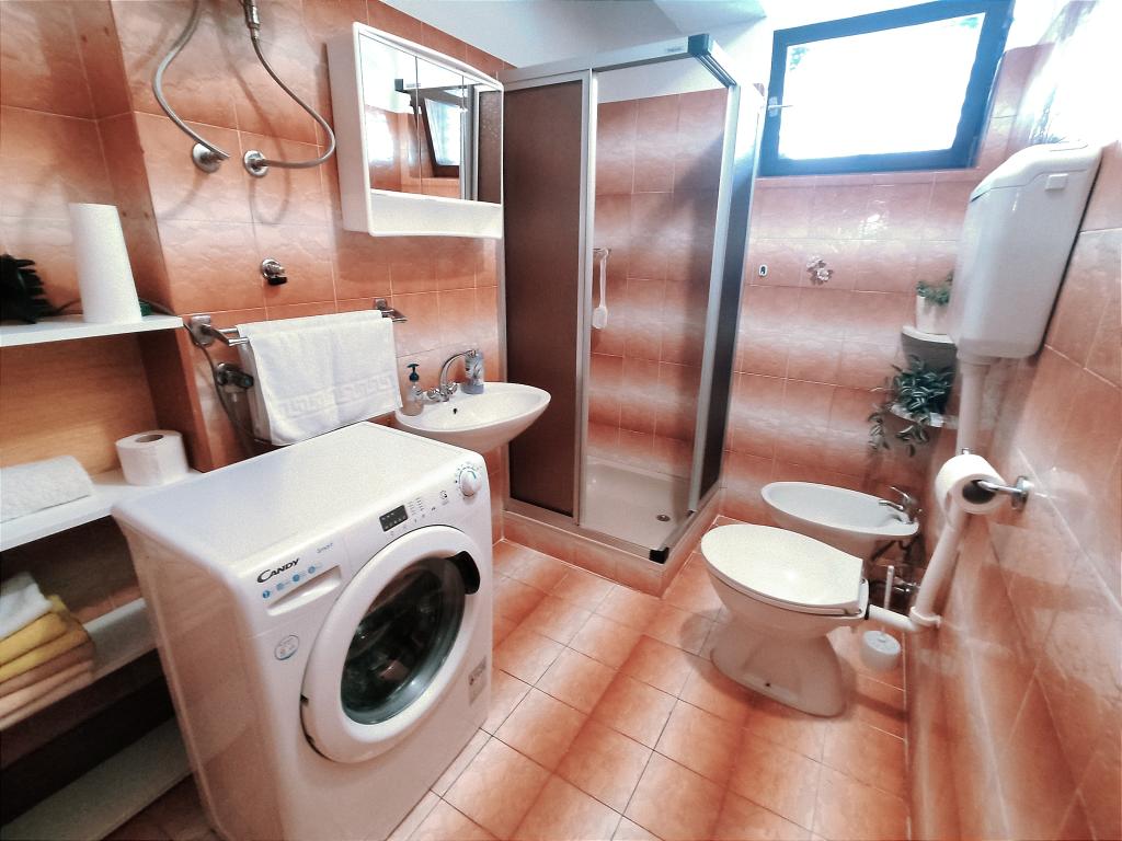 Lijep i dovoljno opremljen apartman u prizemlju. Ima klima uređaj, perilicu rublja, ventilator i veliki hladnjak. Prostor za sjedenje u ugodnoj hladovini ispred kuće, šljunčana plaža s ugodnim ulazom u more oko 100m od apartmana. U blizini se nalazi trgovina i restoran po pristojnim cijenama. Mirno okruženje, parking odmah pored kuće u hladovini. Šibenik oko 10 minuta vožnje. Vlasnik je ljubazan, lako se komunicira na engleskom.