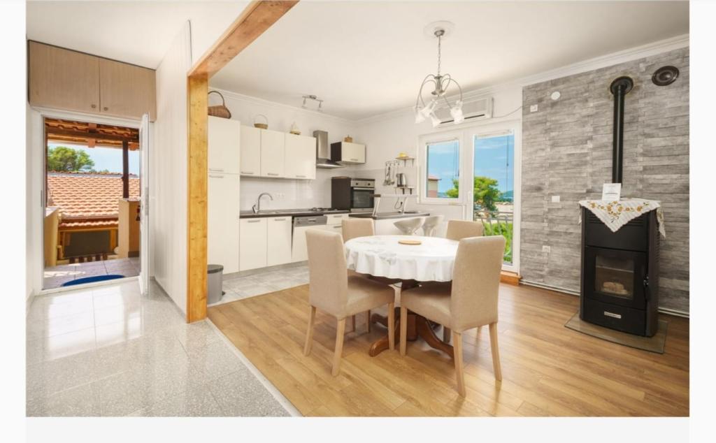 Apartmani se nalaze u mirnom dijelu naselja,daleko od glavne prometnice a blizu mjesne plaže.Novo uređena plaža koja se proteže na 400 m obalese nalazi na 3 minute automobilom od apartmana .Plaža ima uređeno diječije,košarkaško i odbojkaško igralište.Opremljena je tuševima ,prostorom za presvlačenje i sanitarnim čvorom. Plaža ima besplatan parking,slastičarna,fast food te caffe bar. Ulazak u apratman je u 14 h Odlazak iz apartmana u 10 h
