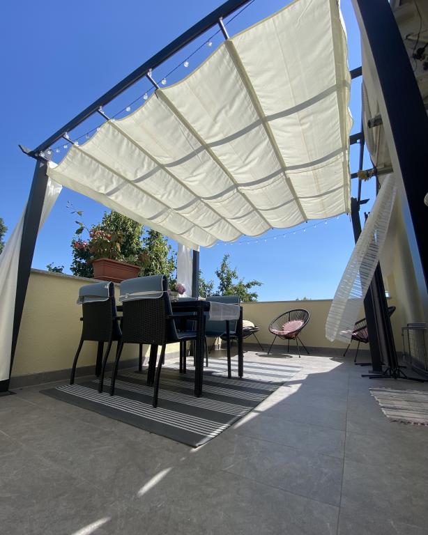 Najbolji apartman do sada! Smještaj se nalazi u mirnom malom mjestu. Dočekao nas je čist, moderan i dobro opremljen apartman. Zadovoljavao je sve naše potrebe. Parkiranje je moguće na privatnom parkiralištu objekta. Stan je u potkrovlju, ali prostran, nas četvero smo se dobro uklopili. Klima uređaj je dostupan bez nadoplate. Stil je moderan, s malom terasom. Domaćin je jako ljubazan i uslužan. Nije bilo problema. Plaža je udaljena deset minuta, tako da su mir i tišina bili osvježenje nakon gužve i vreve. U selu postoji samo jedna manja trgovina mješovitom robom. Izbor nije velik, ali sve što vam treba je dostupno. Ovdje se nalazi nekoliko kafića i malih restorana. Sve u svemu, rado bih ga preporučio svim kulturnim obiteljima i parovima. Na odlasku smo dobili bocu vina na poklon! Bilo nam je super ovdje! Hvala!
