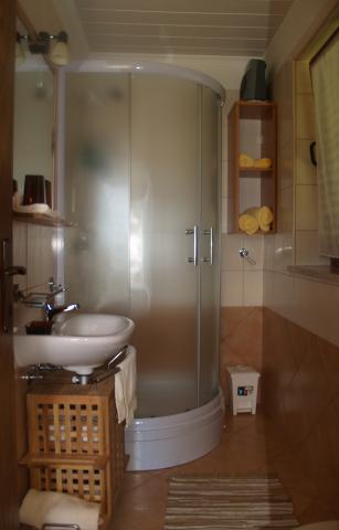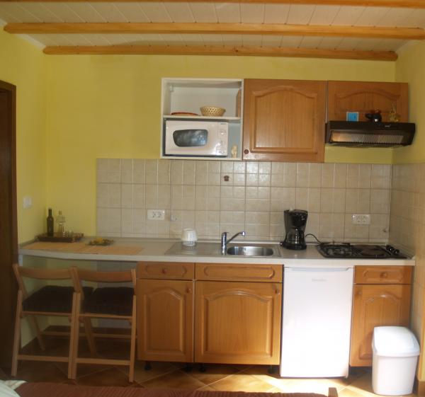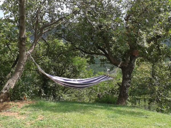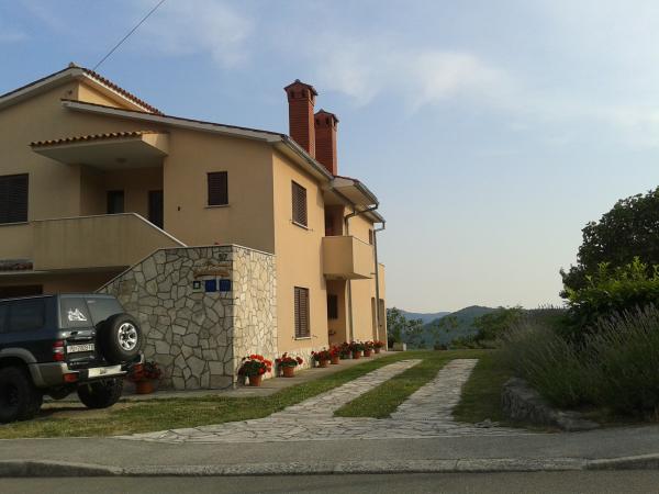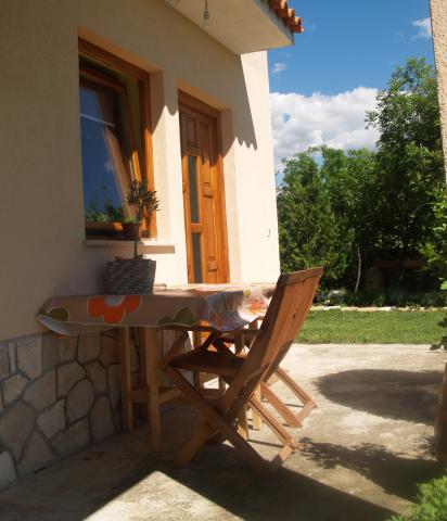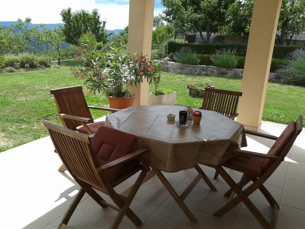 Apartman sa kompletno opremljenom kuhinjom, dnevnim boravkom, SAT TV, sobom sa svom posteljinom, kupatilom sa ručnicima, sredstvima za osobnu higijenu, velikom natkrivenom terasom sa prekrasnim pogledom. na zelenilo i brda. Kuća se nalazi na mirnoj lokaciji, a veliko dvorište je pogodno za dječju igru. U apartmanu postoji krevetić za bebu. Apartmani imaju zaseban ulaz i parking.