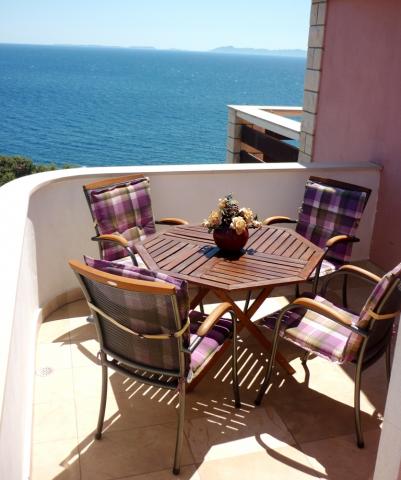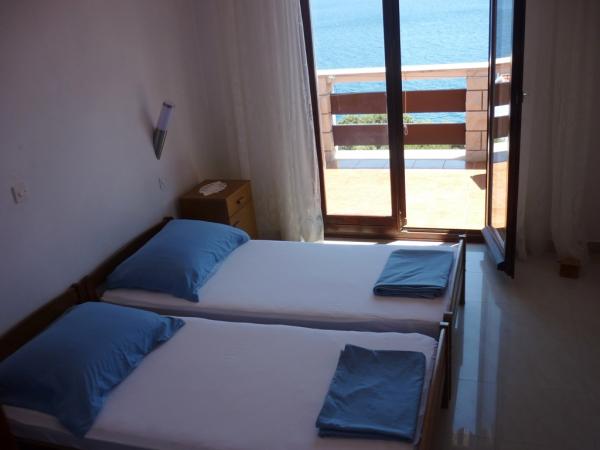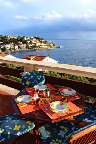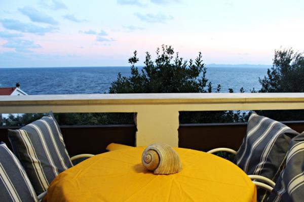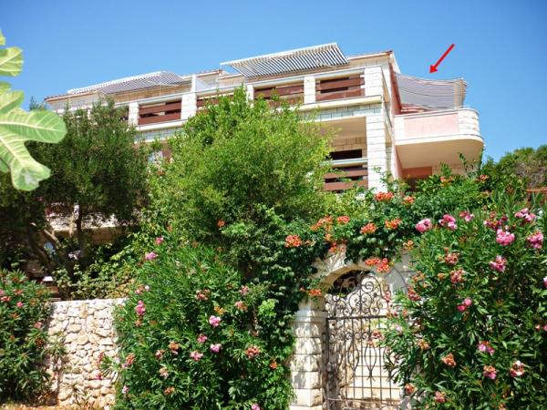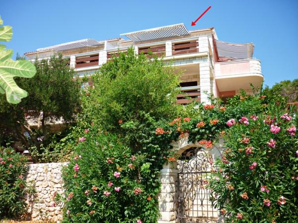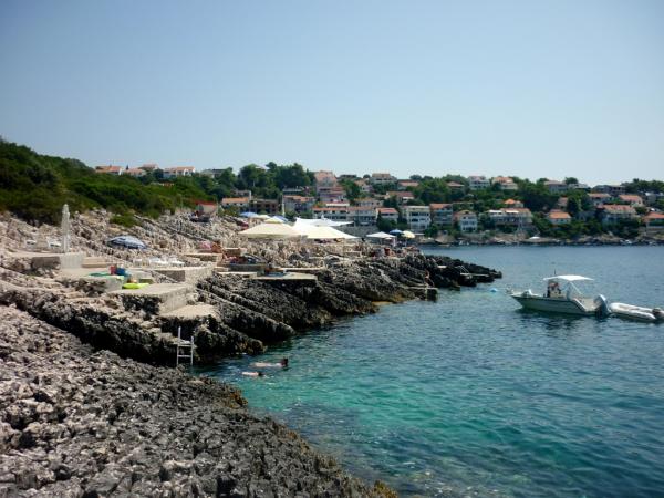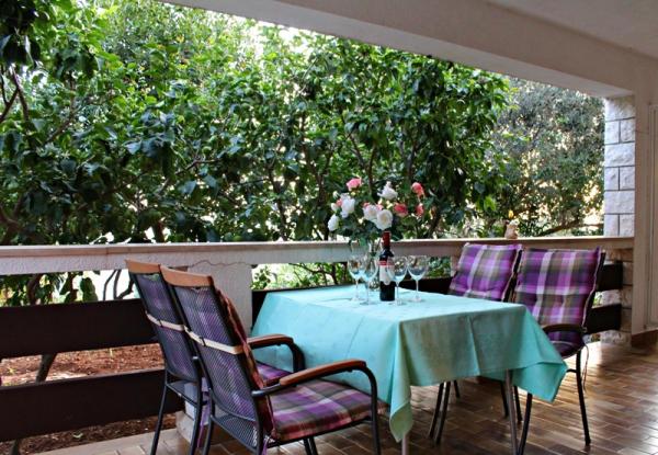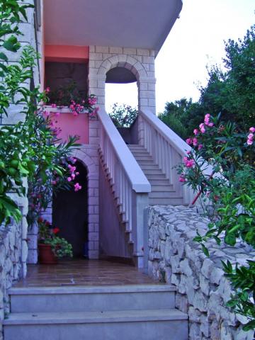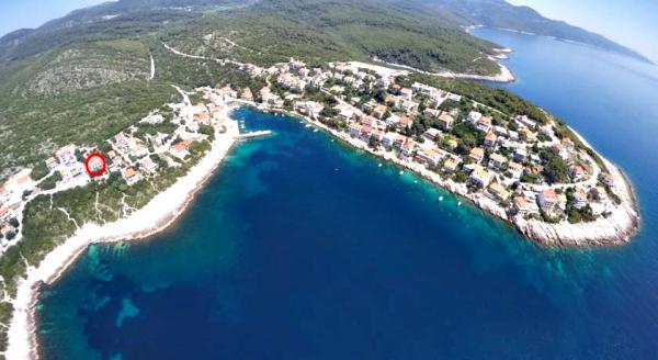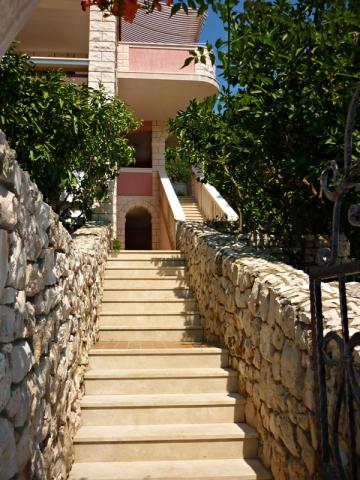 Lijepa, ugodna kuća s više apartmana u mirnom, sunčanom naselju iz koje se pruža prekrasan pogled na more i uvalu. Kuća je smještena prema jugu, a nalazi se 70 m od mora i plaže. Kako bi uživali u ugodnim ljetnim večerima, za zajedničko korištenje svim gostima je na raspolaganju terasa od 54 m2 koja sadrži veliku garnituru za sjedenje u kojem se čak 14 ljudi može nesmetano družiti. Da bi doživljaj druženja bio potpun na terasi se nalazi i roštilj koji omogućuje da gosti mogu pripremati jela po svom ukusu. U kući je osiguran bežićni pristup internetu pa se gosti mogu bez problema mogu povezati s cijelim svijetom. Uz kuću se nalazi i parking tako da gosti nemaju problema s ostavljanjem svoga automobila. Stjenovita-betonirana plaža je udaljena svega 70 metara od kuće dok je prekrasna šljunčano-pješčana plaža Žitna udaljena jedan kilometar. Caffe bar je udaljen 200 metara, restoran 350m, a trgovina za kupnju namirnica nalazi se 300 metara od smještaja.