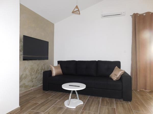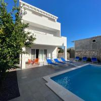 Moderna kuća nudi tri luksuzna apartmana i bazen, idealna za odmor. Svaki apartman je elegantno uređen i opremljen svim potrebnim sadržajima, uključujući klimatizaciju i Wi-Fi. Gosti mogu uživati u zajedničkom bazenu i mirnom okruženju. Kuća pruža savršenu kombinaciju udobnosti i privatnosti, s lakim pristupom lokalnim atrakcijama.