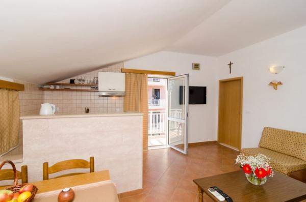 14-dnevni boravak - stan ispunjava sve kriterije koji su potrebni za odmor - čista, suha, čista, s klima-uređajem radnog i veliki balkon s prekrasnim pogledom na more - domaćini pružaju ručnike i uslugu prijevoza iz / do zračne luke ako je potrebno. (Letjeli smo avionom) U istoj zgradi, turističke informacije i car, dućan i restoran u neposrednoj blizini. Ovaj apartman se nalazi na uzvisini pa do plaže i grada morate hodati oko 15 minuta što može biti zamorno za malu djecu. Vila je idealno pod putanju leta zrakoplova slijetanja u zračnoj luci, ali na naše iznenađenje to nije osobito naporan i vrlo je dodatna atrakcija. Domaćini su bili tako prijateljski - da možete dobiti zajedno s njima na poljskom, nude pomoć i savjetovati što posjetiti i vidjeti. Oni će također biti tretirane pozdraviti lokalne rakiju.