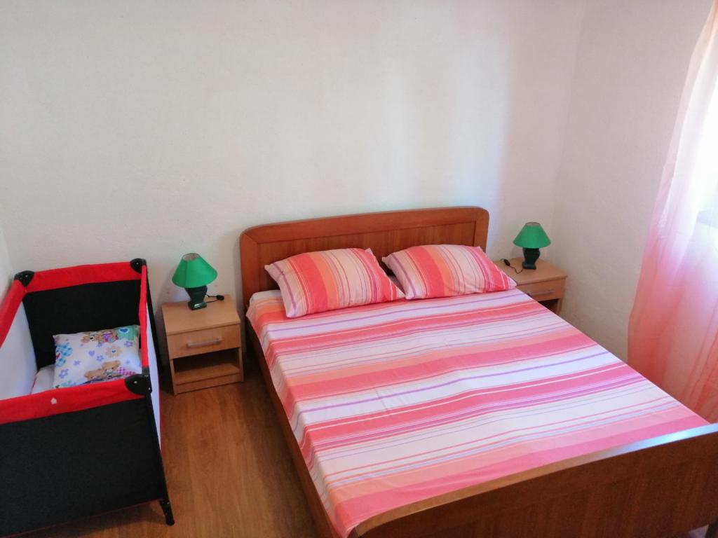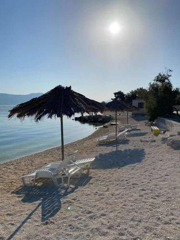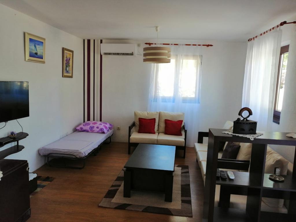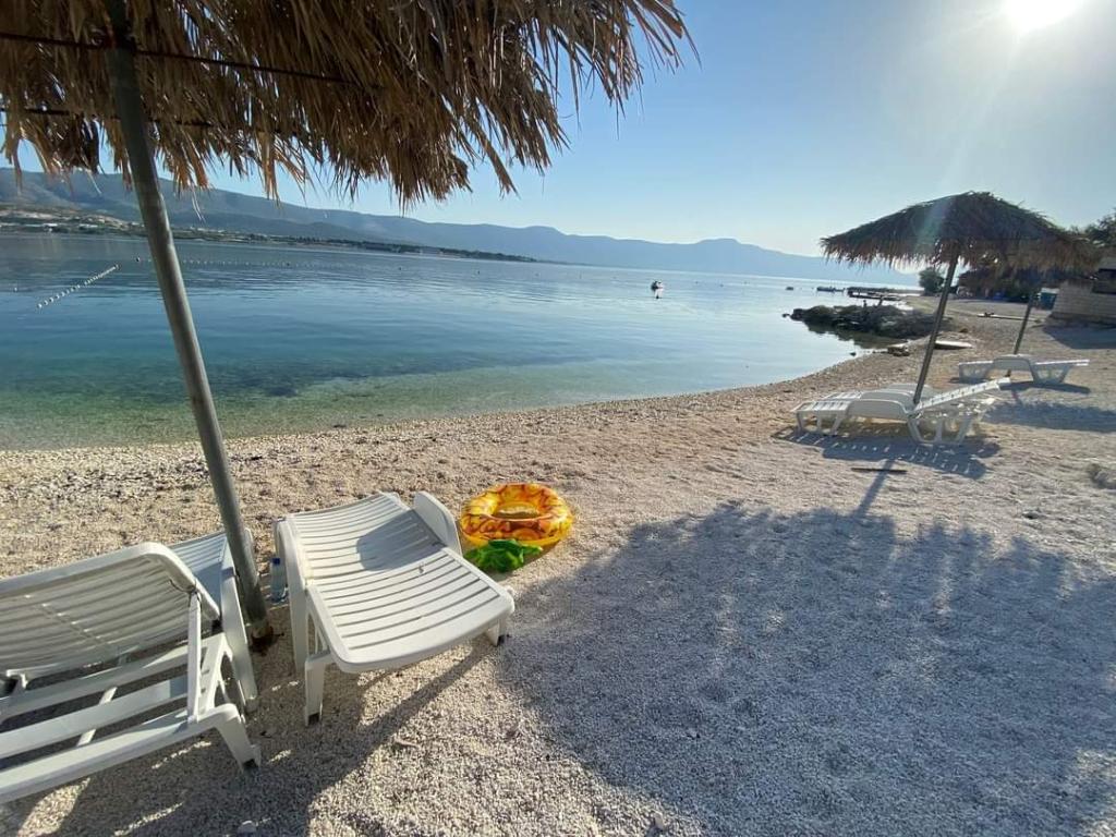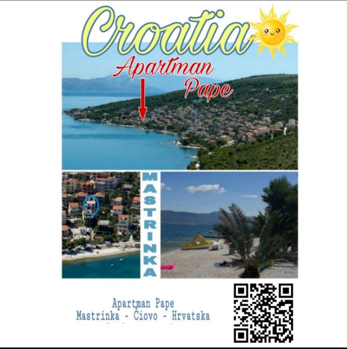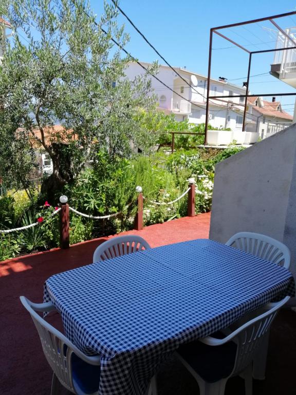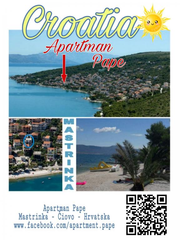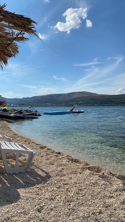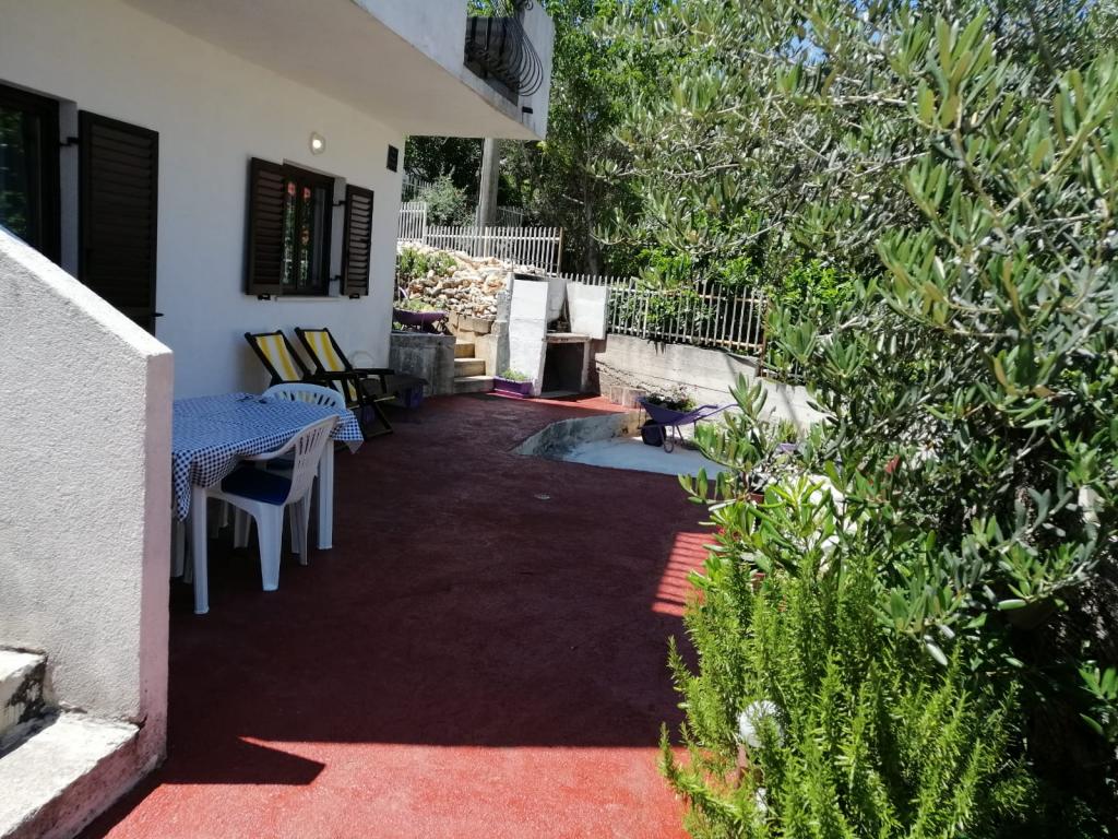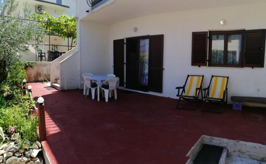 Apartman se nalazi u prizemlju obiteljske kuće, na Čiovu. 50m od šljunčane plaže. 3km od centra Trogira. Velika terasa. Roštilj.