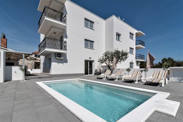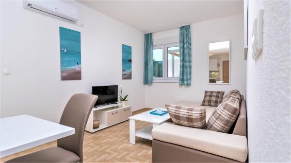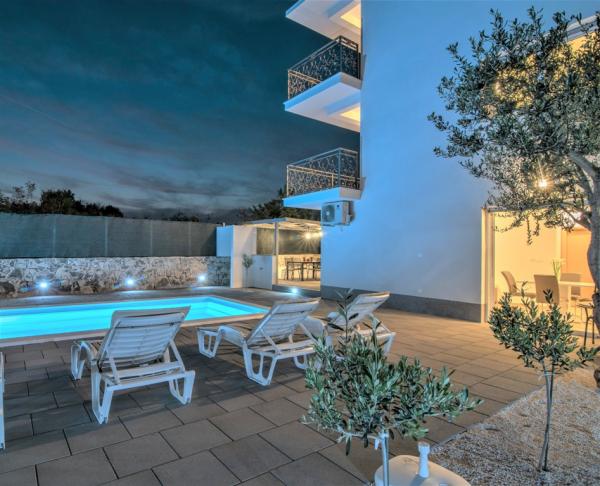 Apartment Adria Zara is situated in a beautiful new building built in 2017. Adria Zara has 2 rooms, living room & kitchen, and bathroom. It is located on the island of Čiovo in a small and quiet place only 8km from airport and 5km from Trogir which is on the UNESCO description of monuments of world cultural heritage. Our guests will have their own entrance, parking, private swimming pool and barbecue. Apartment has its private yard of 220 m2.