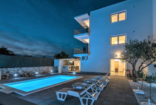 Turistička pristojba je uključena u cijenu.Apartment is located on the ground floor. Apartment has two bedrooms, living room, kitchen, bathroom and a yard of 220 m2 with private barbecue and private swimming pool and parking.