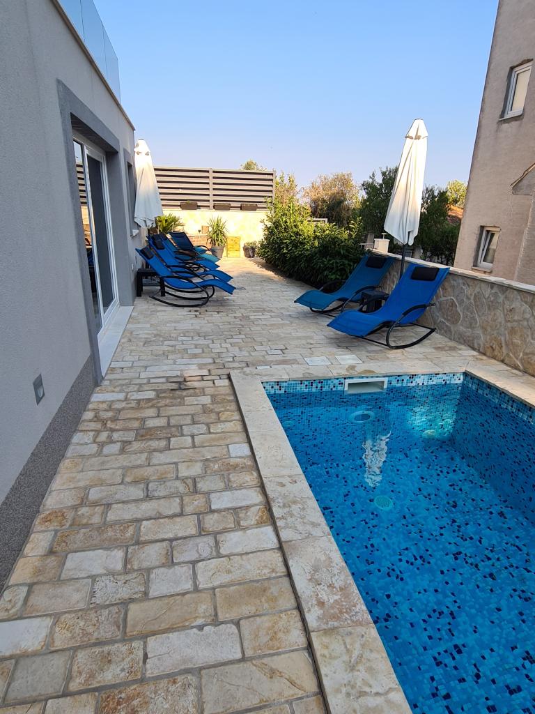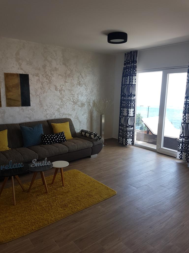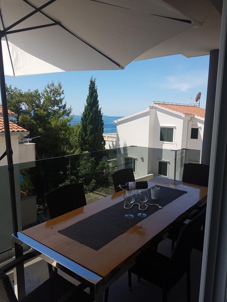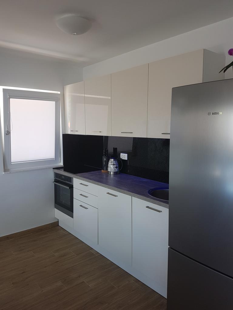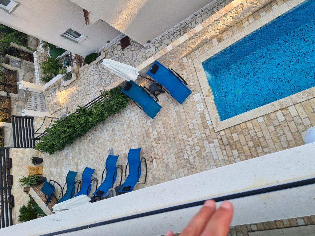 Apartman se nalazi u vili Aqua na prvom katu. Sastoji se od dvije sobe ,jedna je s balkonom,druga s kupaonicom.Veliki dnevni boravak,kuhinja,terasa,kupaonica još jedna.U apartmanu se nalazi perilica za posuđe i za rublje. Vanjski dio sadrži zajednički bazen,jacuzzi,parking,grill...Udaljenost od plaže 50m...betonska plaža.
