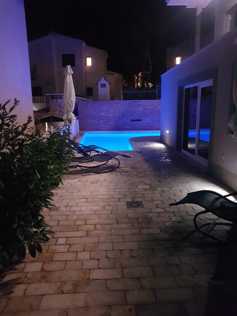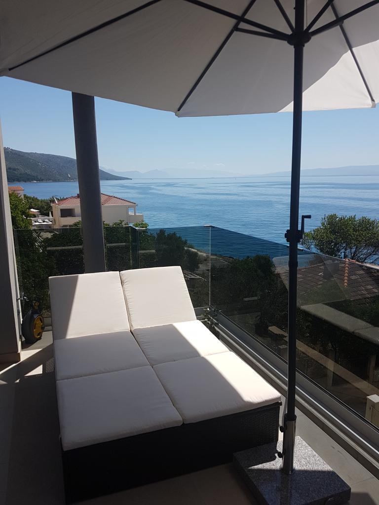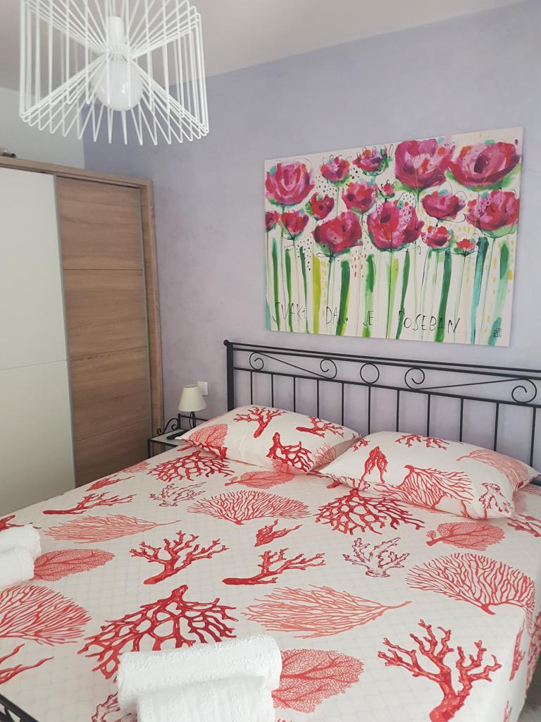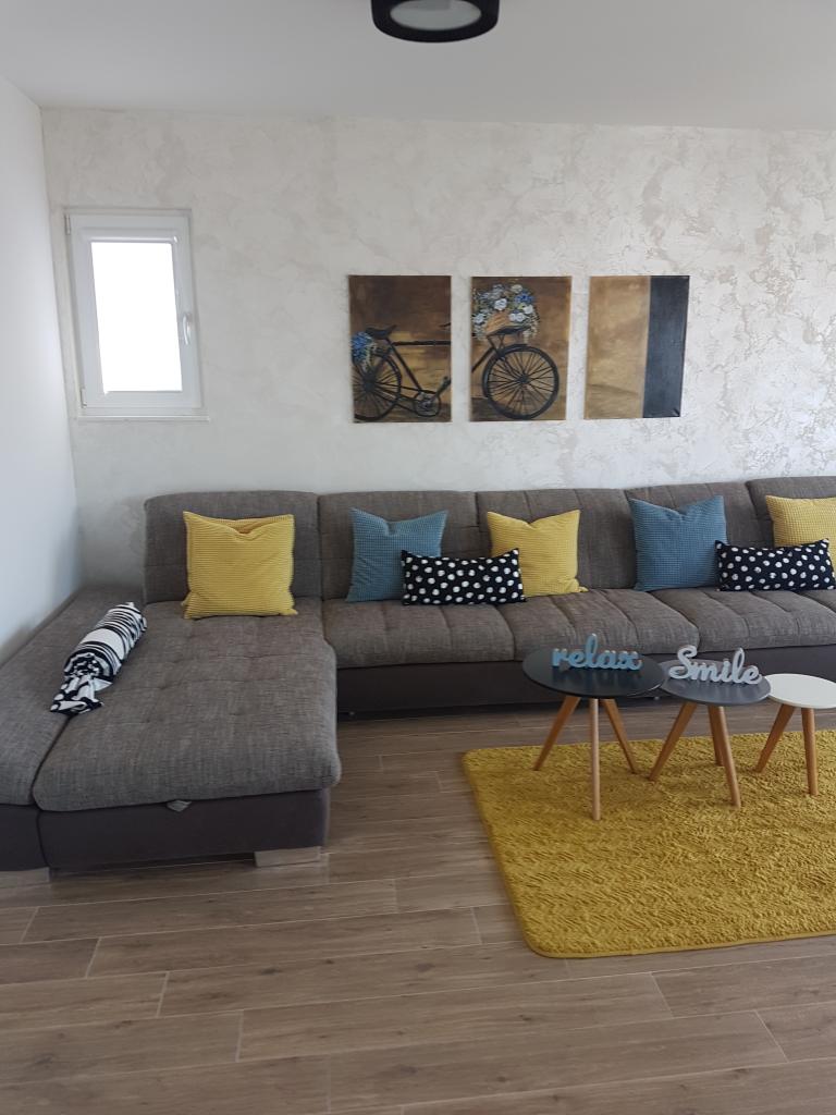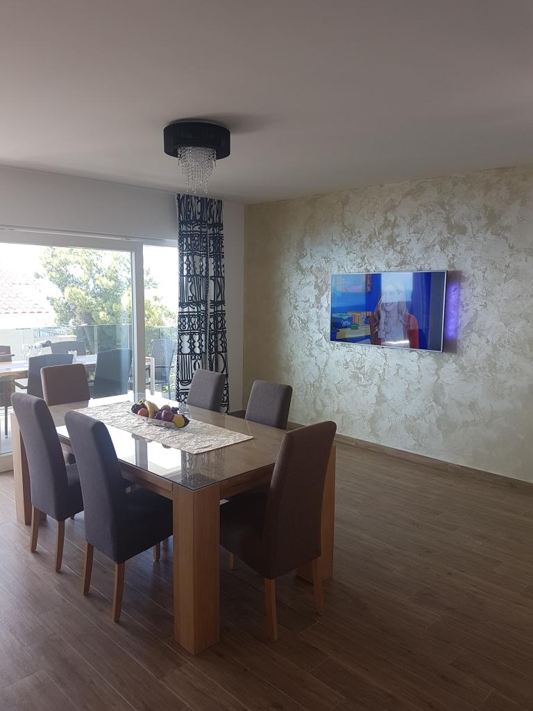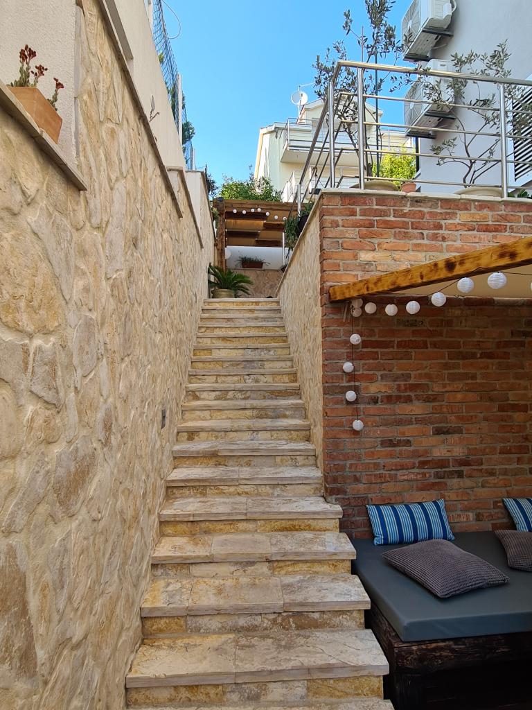 Apartman se nalazi u vili Aqua na prvom katu. Sastoji se od dvije sobe ,jedna je s balkonom,druga s kupaonicom.Veliki dnevni boravak,kuhinja,terasa,kupaonica još jedna.U apartmanu se nalazi perilica za posuđe i za rublje. Vanjski dio sadrži zajednički bazen,jacuzzi,parking,grill...Udaljenost od plaže 50m...betonska plaža.