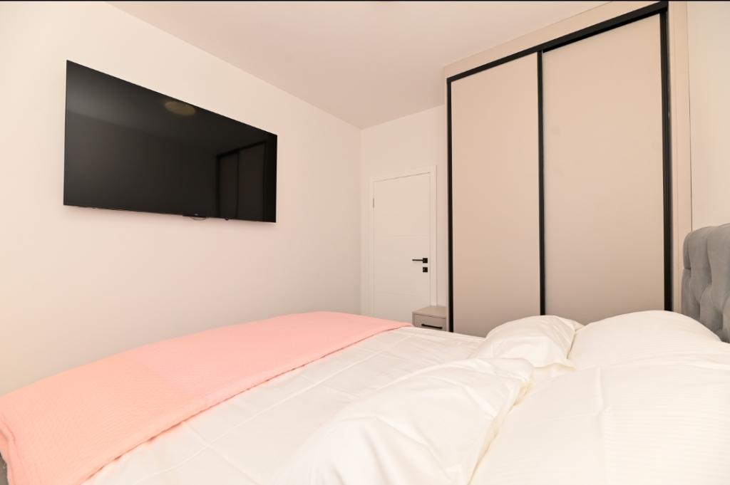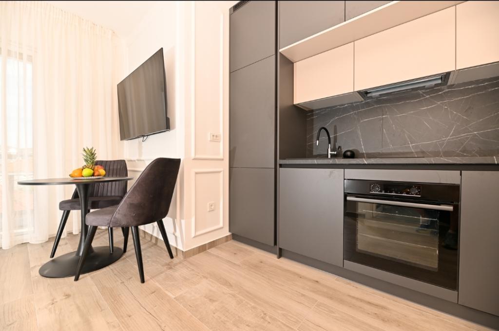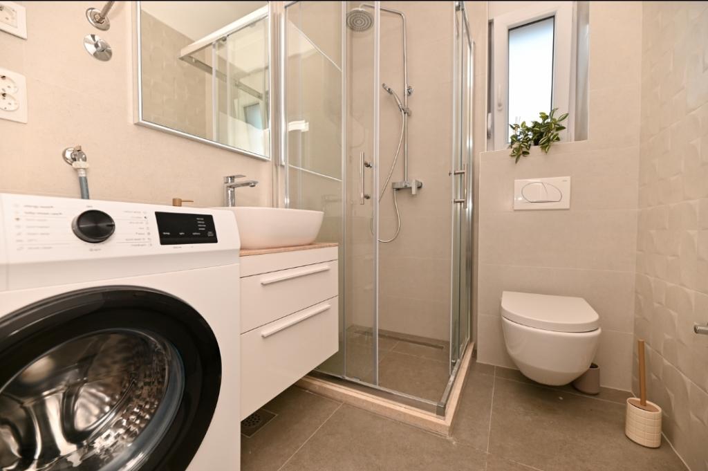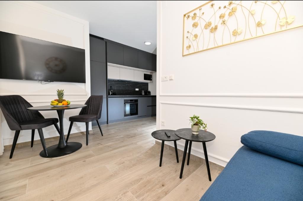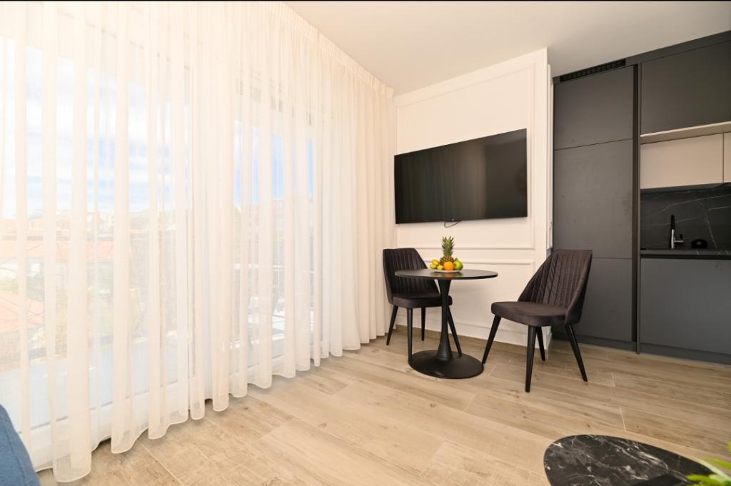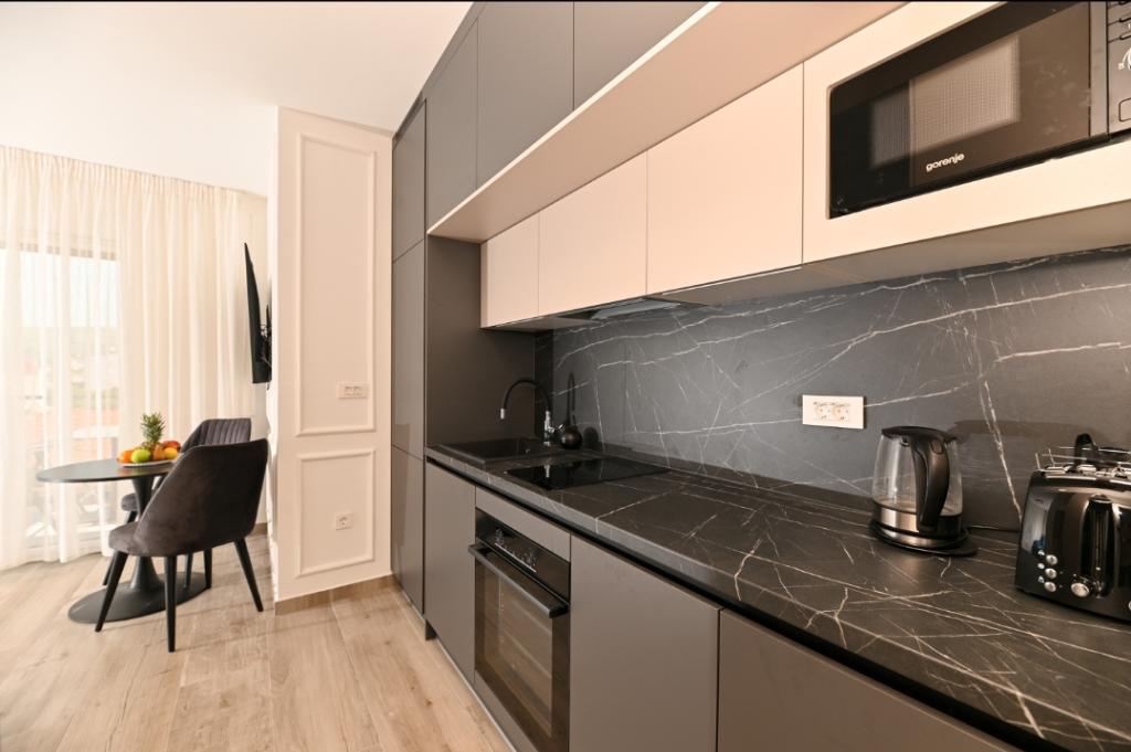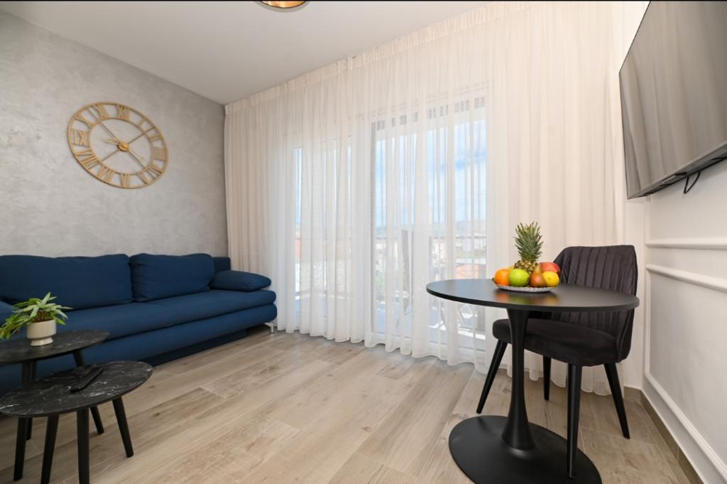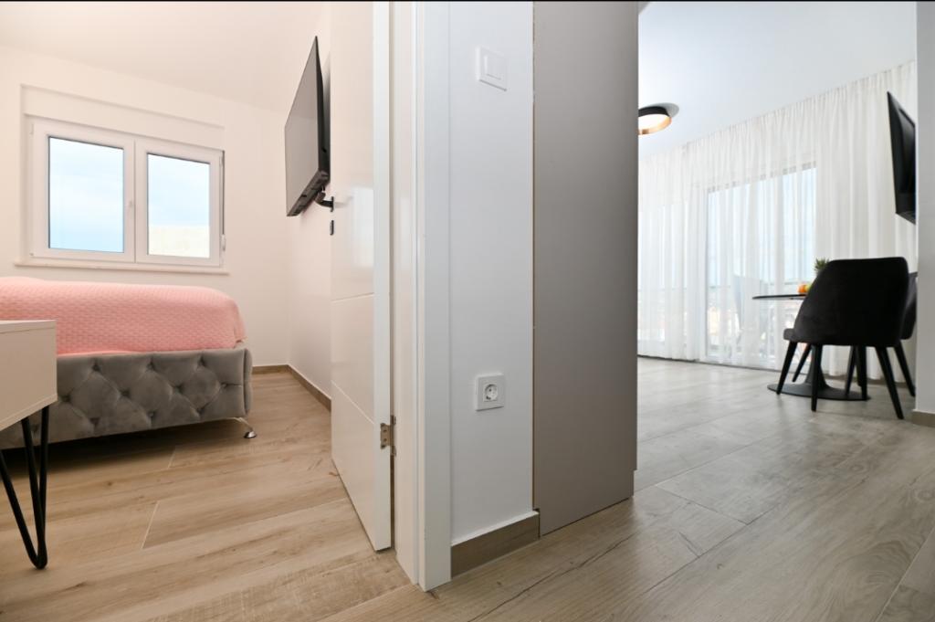 Kompletno i suvremeno opremljeni apartmani u mirnom predjelu, smješteni 200 metara od mora i sa pogledom na more i privatnim parkingom. Objekt se nalazi 2 minuta hoda do plaže kao i 5-10 minuta do trgovina, kafića , restorana itd.