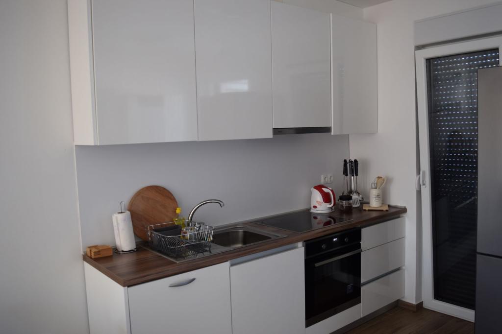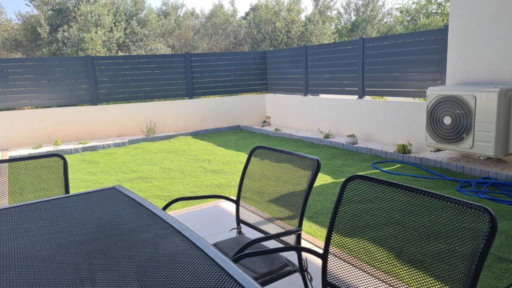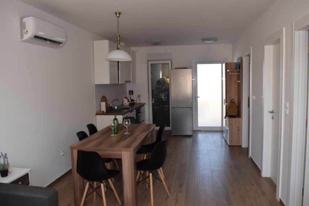 Kompletno i suvremeno opremljen apartman u mirnom predjelu. Najbliža plaža udaljena je 1.6 km, a najbliža trgovina km. Na samoj plaži imaju restorani. Apartman je okrenut prema moru, dvorište veličine 47 m kvadratnih okrenut je prema prirodi. Apartman ima perlicu suđa, perlicu rublja, opremljenu kuhinju +, vanjski roštilj, i naravno parking uz sklopu apartmana. Zračana luka je udaljena samo 9 km.