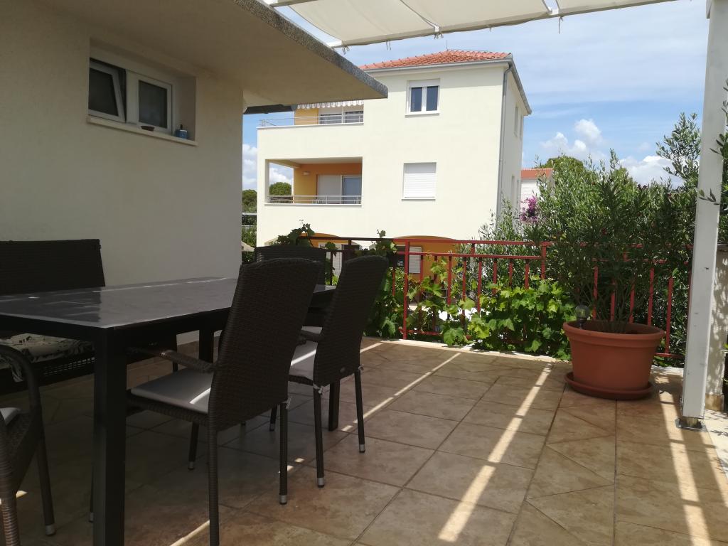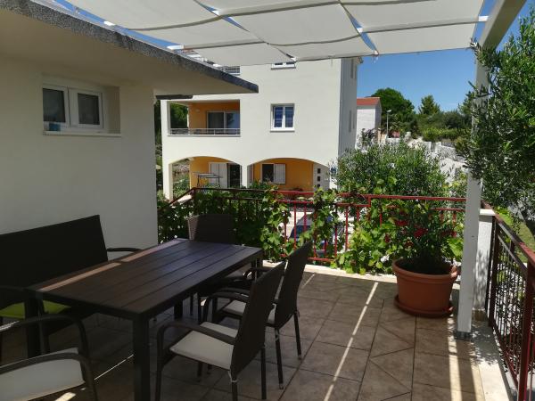 Moderno uređen i opremljen apartman u mirnom dijelu otoka Čiova, točnije njegova južna strana sa pogledom na more. Apartman ima 30 m2, kao i terasu (15 m2) i balkon (9m2) sa pogledom na more. Parkirna mjesta se nalaze odmah ispred apartmana, a u vrtu se nalazi gril. Objekt se nalazi 100 metara od mora i 10 minuta hoda do restorana i prodavnice.