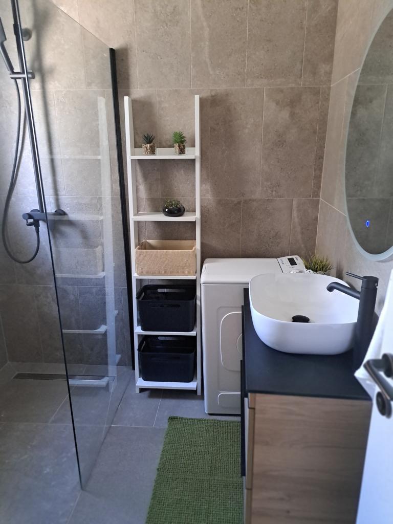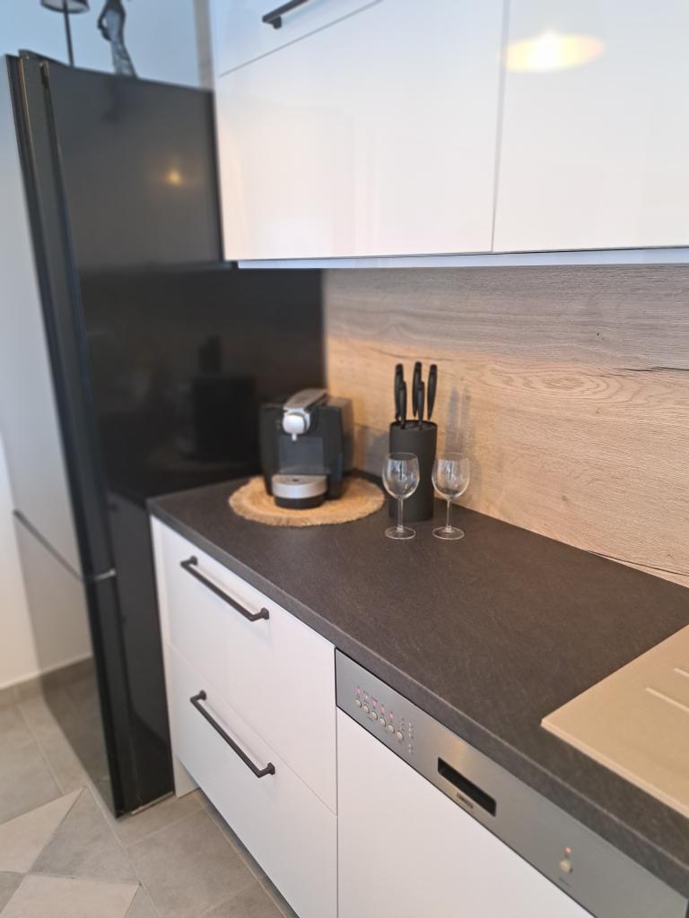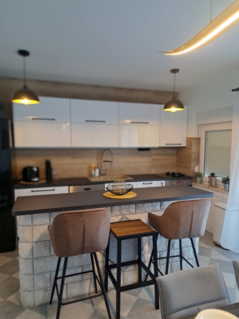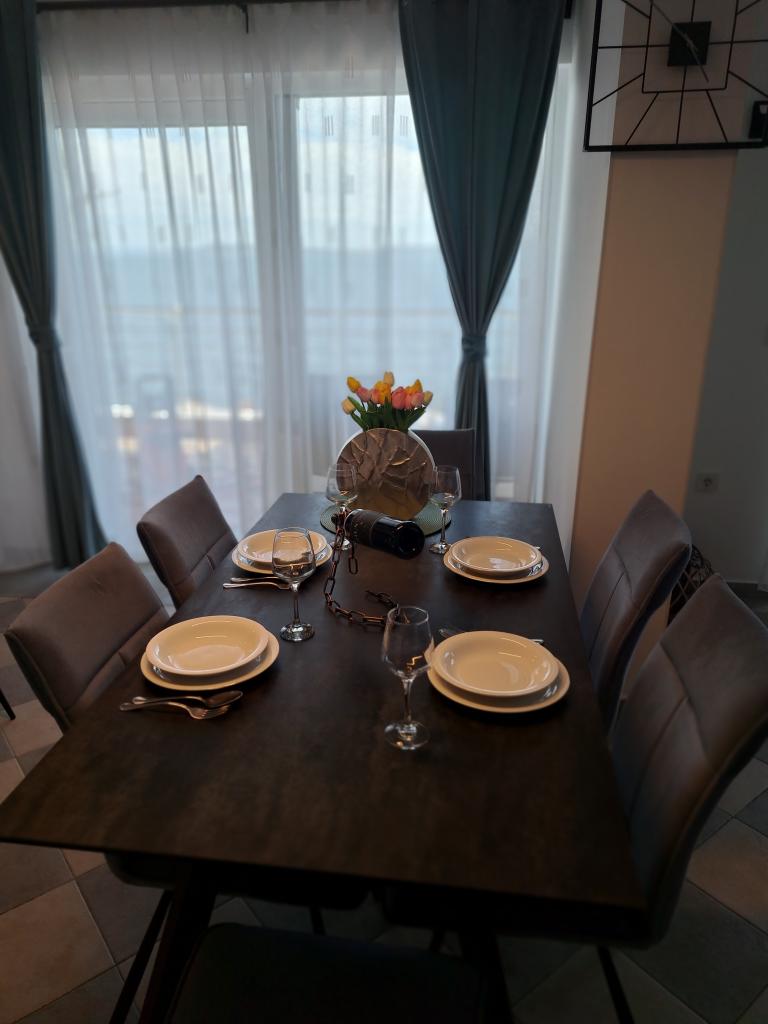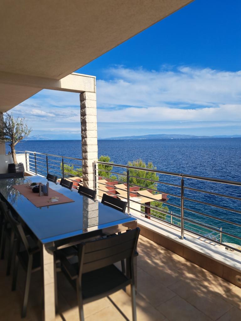 Suvremeno opremljen apartman u kući prvi red uz more.Sastoji se od dvije sobe,dnevni boravak,kuhinja,kupaonica,wc,velika terasa s prekrasnim pogledom. Parking osiguran,vanjski grill. Apartman je klimatiziran,opremljen perilica za posuđe,rublje,wifi..