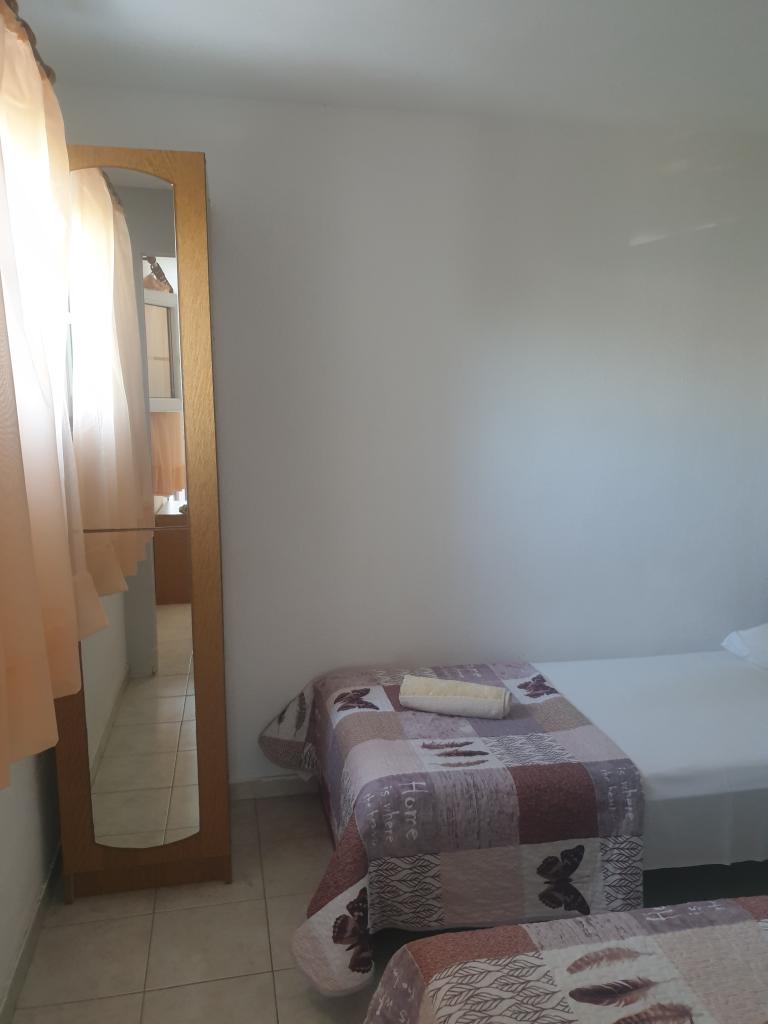 Stvarno lijep stan posebno za obitelj. Prostrana, s dvije prekrasne terase, jedna s pogledom na more, a druga s pogledom na vrt. Mirno susjedstvo, baš na vrijeme za opuštanje. Vrlo blizu plaže i stvarno ljubazan vlasnik. Vrlo čista kupaonica i drugi WC. Čista i dobro opremljena kuhinja.
