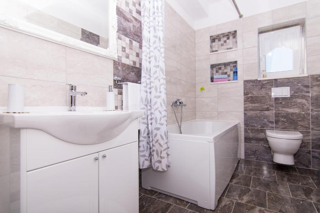 Apartman M. M. nalazi se u prizemlju obiteljske kuće u mirnoj ulici, svega 200 m udaljen od centra svih ljetnih događanja - plaža, restorani, kafići. Apartman se sastoji od 2 velike spavaće sobe, 1 manje sobe, potpuno opremljene kuhinje sa dnevnim boravkom, velike kupaonice i terase. Na raspolaganju su privatni parking i korištenje roštilja. Budite naši gosti :)