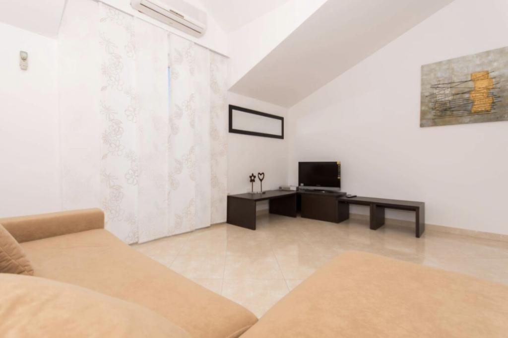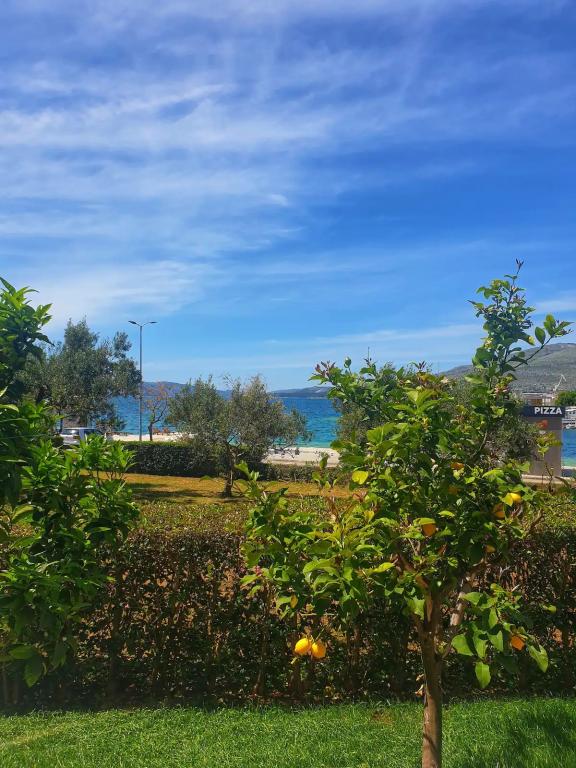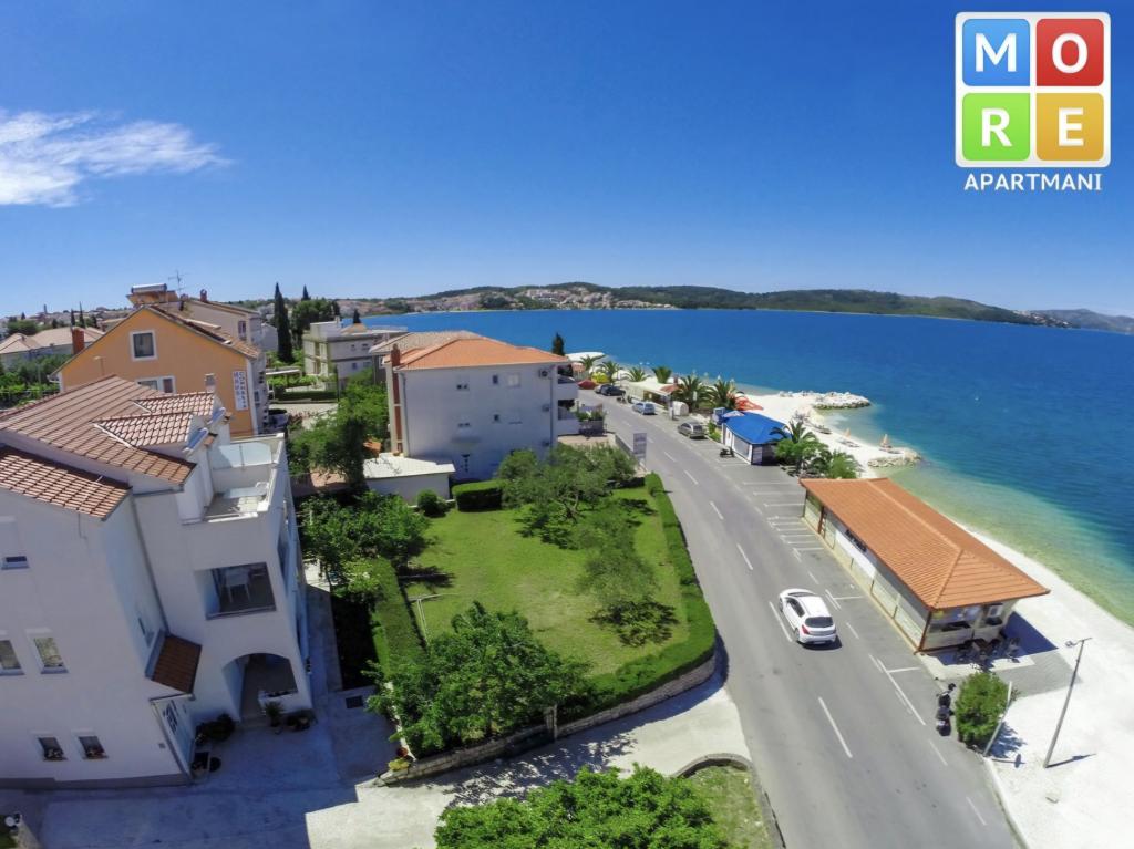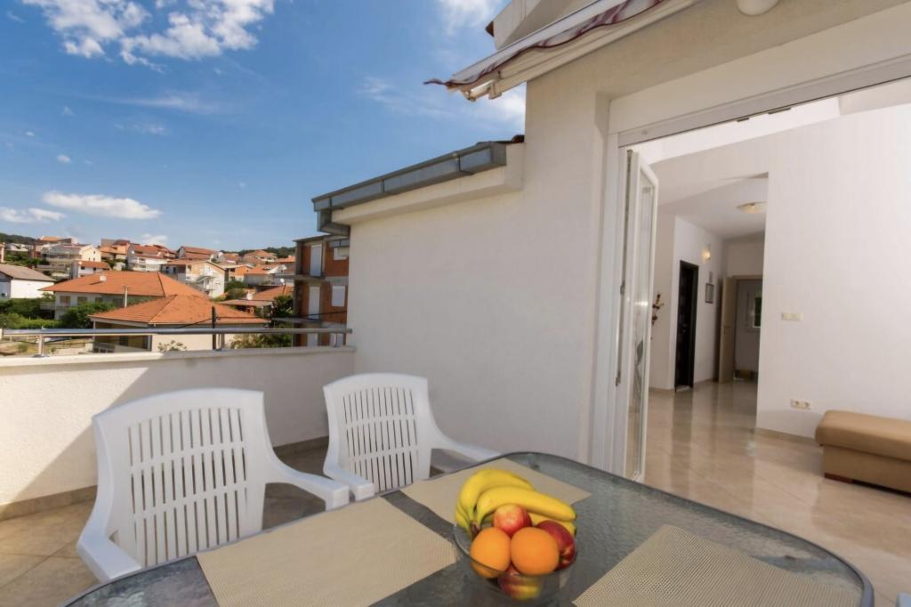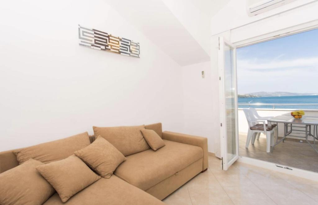 Apartman je udaljen svega 10m od mora i glavne plaže u mjestu Okrug Gornji. U blizini se nalazi supermarket, restoran, caffe bar i mnoge druge uslužne djelatnosti. Također, vrlo je blizu centru Trogira, kao i marini, autobusnom kolodvoru i zračnoj luci.
