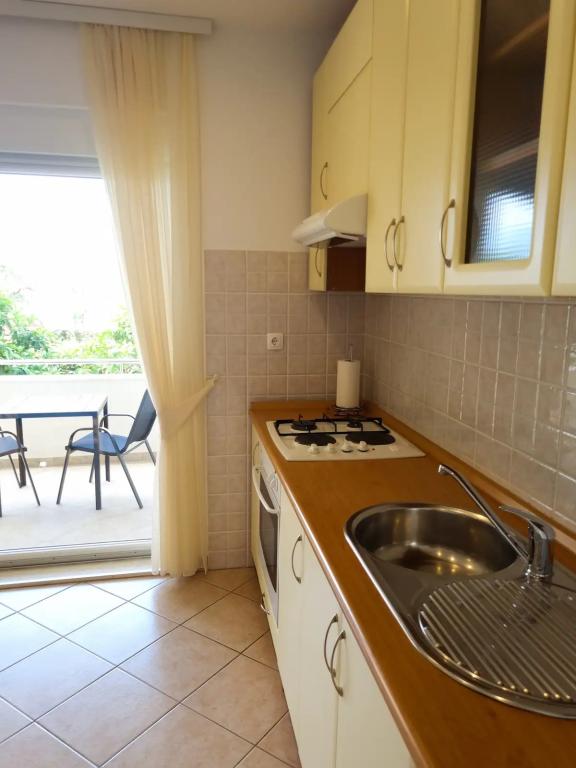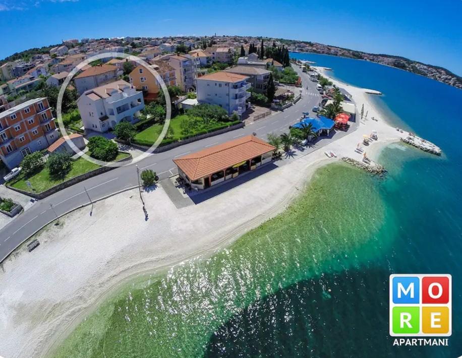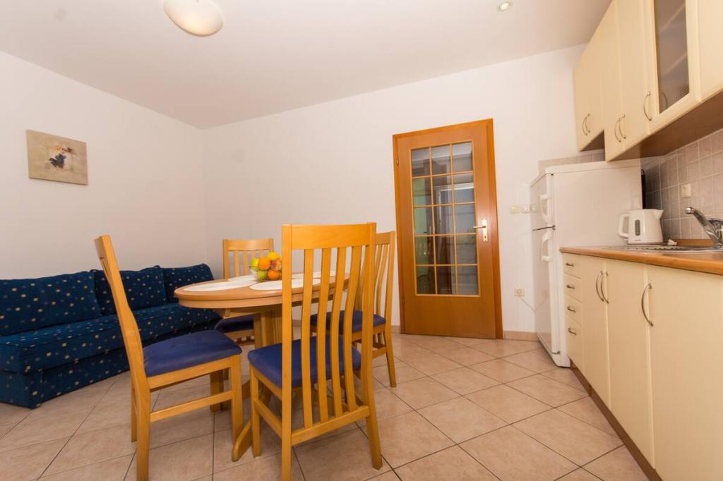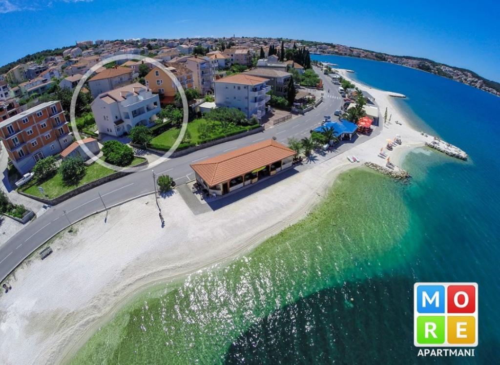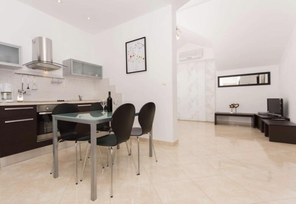 Apartman je udaljen svega 10m od mora i glavne plaže u mjestu Okrug Gornji. U blizini se nalazi supermarket, restoran, caffe bar i mnoge druge uslužne djelatnosti. Također, vrlo je blizu centru Trogira, kao i marini, autobusnom kolodvoru i zračnoj luci.