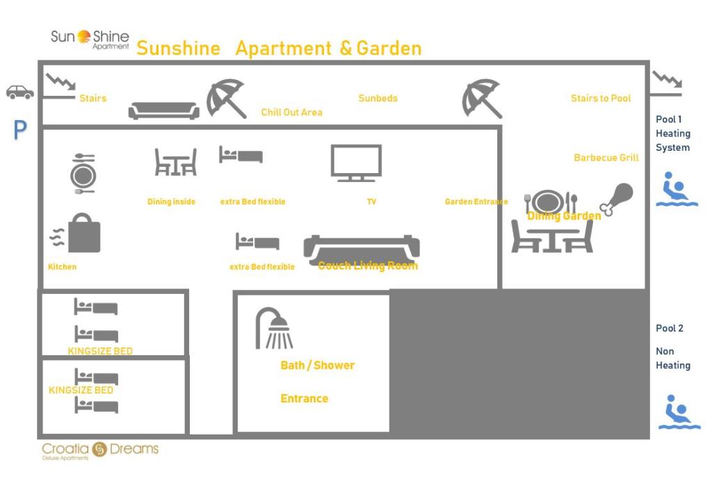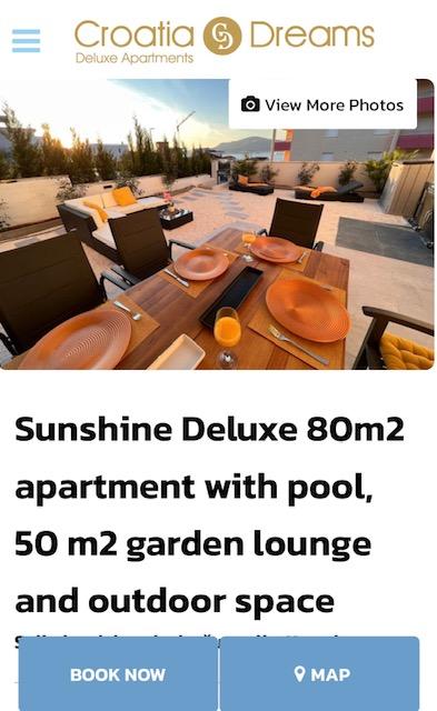 Dobrodošli u Croatia Dreams! Nudimo luksuzne apartmane ovdje na prekrasnom otoku Čiovu (Trogir). U blizini se nalaze 2 luksuzna apartmana, tako da možete rezervirati idealnu kombinaciju odmora za 2/3 obitelji i/ili do 12 osoba. Imamo bazen u svakom od apartmana te vanjsku kuhinju s roštiljem, kao i razni namještaj za dnevni boravak i više ležaljki, glazbeni sustav i e-skutere za iznajmljivanje - ovdje nijedna želja ne ostaje neispunjena. Nudimo prijevoz iz zračne luke, organizaciju najma automobila/čamaca/vodenih sportova. Možete saznati više na www.croatia-dreams.com i rezervirati izravno bez dodatne provizije kojom upravlja njemački vlasnik. Naša lokalna služba za goste Luka će vam sve organizirati. Kliknite za whats app https://wa.me/491739383736 Kontaktirajte nas pošaljite e-mail na info@croatia-dreams.com ili rezervirajte online: https://croatia-dreams.com/ferienwohnungen/Okrug-Gornji/sunshine-deluxe-pool-apartment-mit-80-m2-mit-50-m2-gartenlounge--outdoorkuche/62386/
