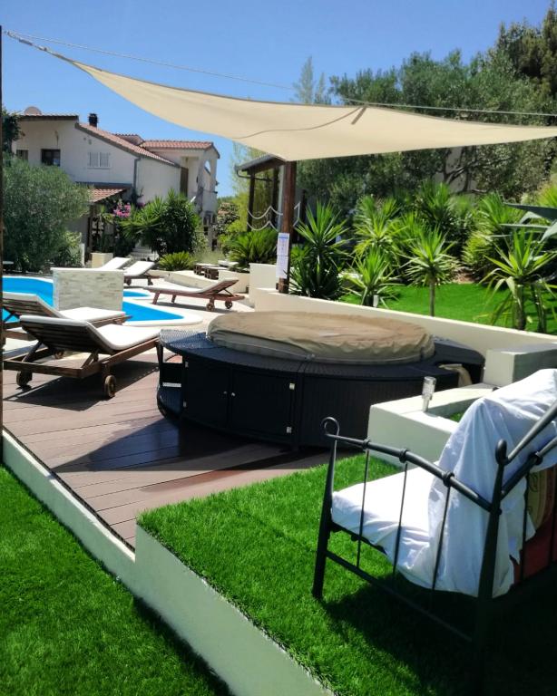 Apartman Piveta nalaze se na uzvisini odakle se pruža predivan pogled na cijeli Okrug i najljepšu plažu Copacabanu. Uživajte u svojoj privatnosti okruženi zelenilom,mirom i tišinom te udaljenosti od svih ostalih stambenih objekata. Apartman vam pruža 3 spavaće sobe,2 opremljene kuhinje,2 kupaonice. Također na velikoj prostranoj terasi možete uživati uz cvrkut ptica i lagani povjetarac. U sklopu apartmana nalazi se prostrani privatni bazen kao i jacuzzi. U slučaju da volite roštiljati imate i mogućnost korištenja velikog opremljenog komina. Apartman Piveta ima veliki ograđeni privatni parking. Što više poželiti? Neka vaš godišnji započne.