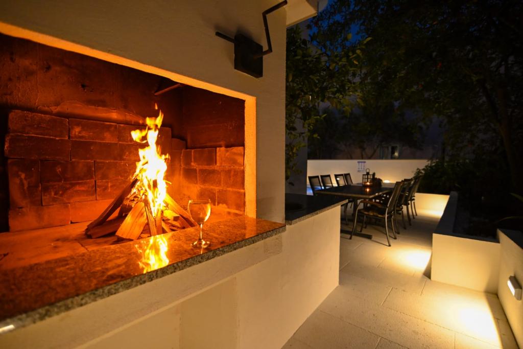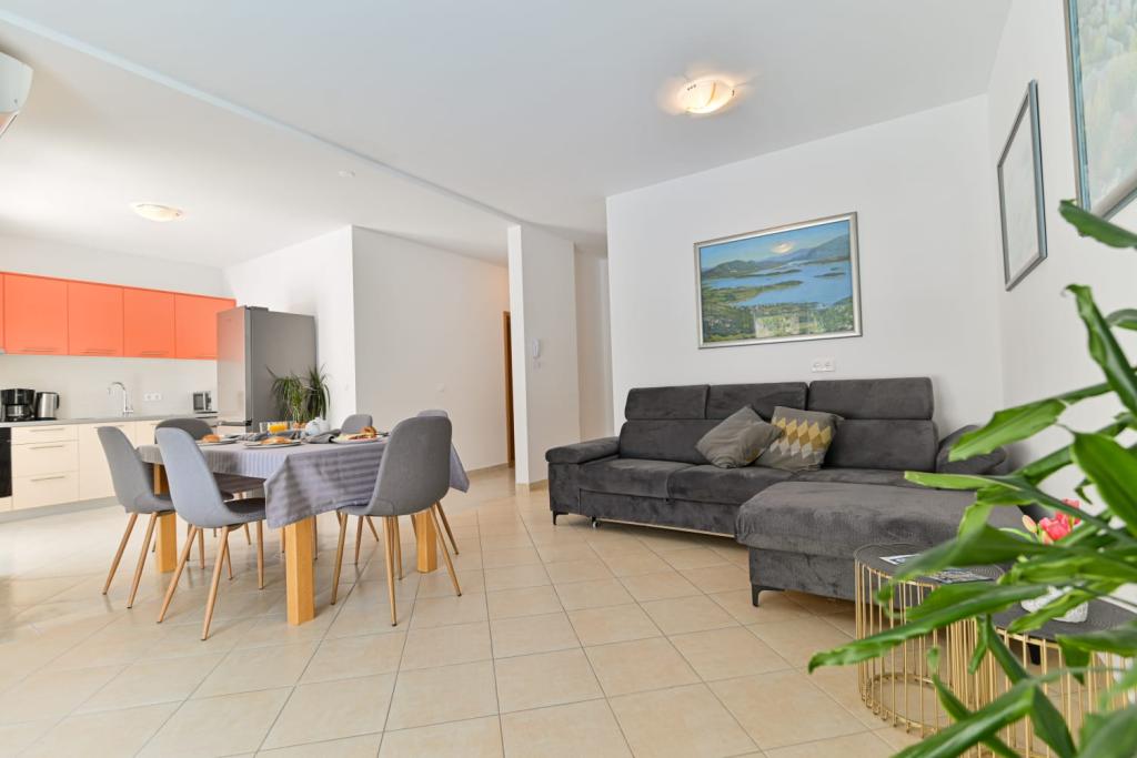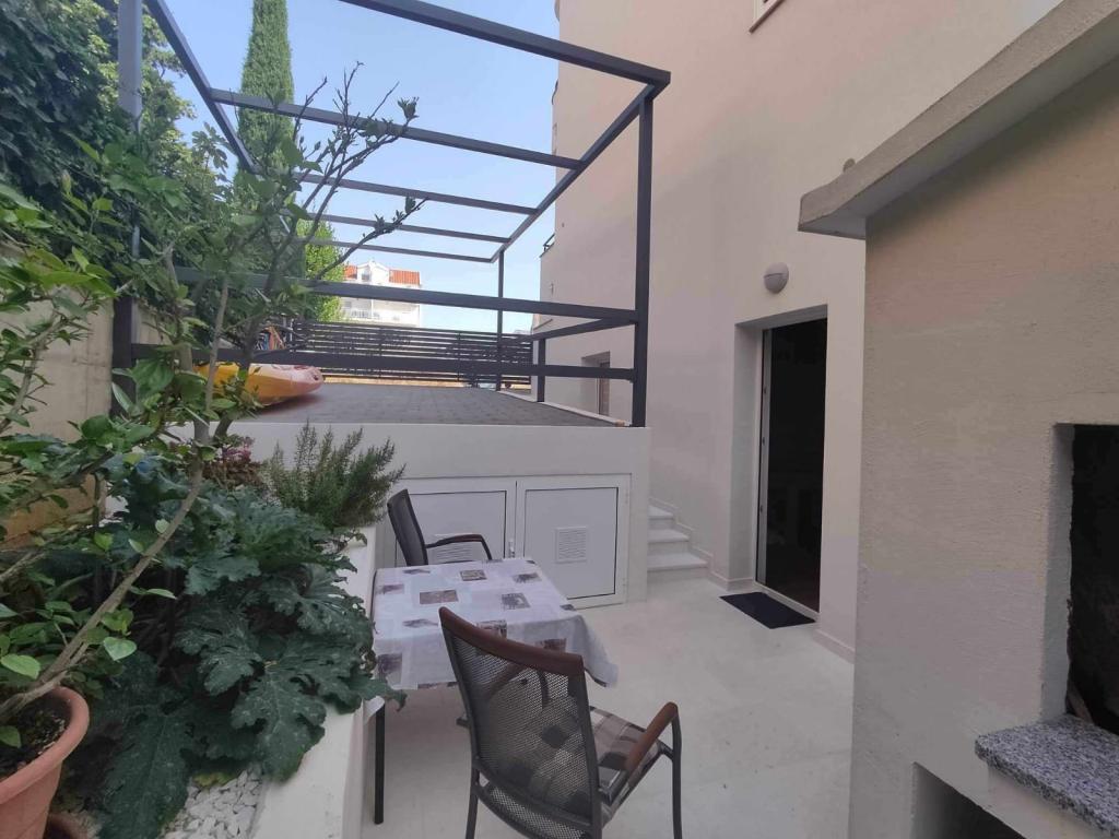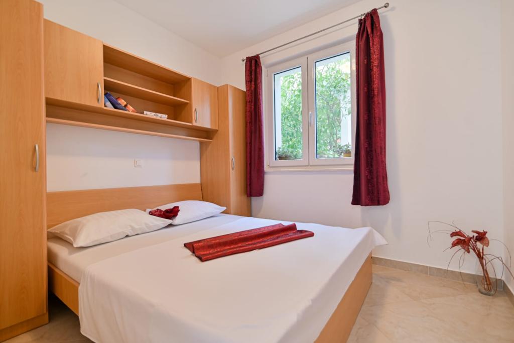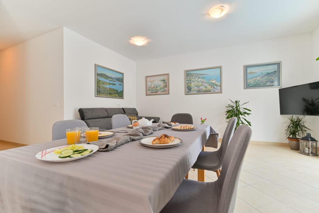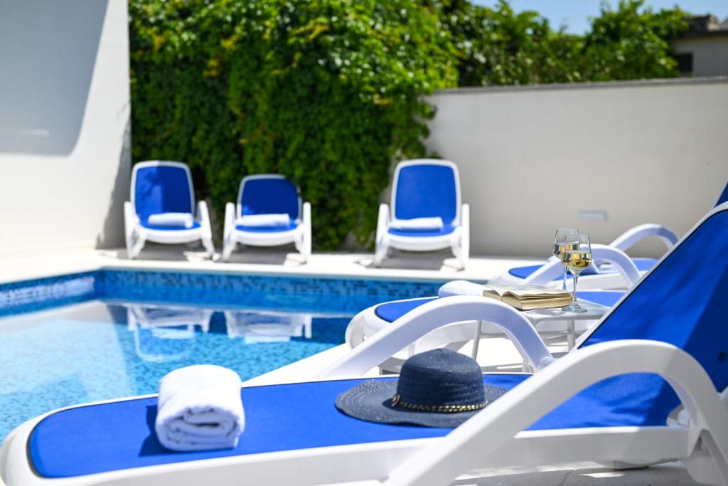Na južnoj strani otoka Čiova ,kojeg dva mosta povezuju s starim i povijesnim gradom Trogirom i kopnom,200 m od kristalno čistog mora i plaze nudimo Vam kompletno opremljen apartman s privatnim bazenom. Apartman s dvije spavace sobe se nalazi u prizemlju,ispred je privatni bazen te gril. U sklopu objekta je osiguran parking .