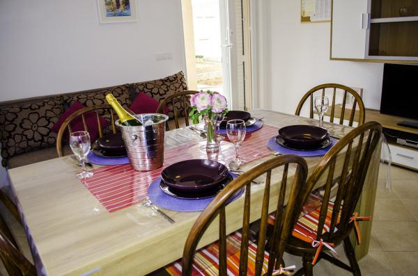 Apartmani Zlatka je objekt koji raspolaže sa tri apartmana. Smješteni smo 50m od glavne plaže koja je duga više od jednog kilometra, te nudi brojne sadržaje poput vodenih sportova, restorana, caffe barova, dječjih sadržaja, i sl. Za one koji žele mirnije provoditi dane u blizini se nalazi velik broj manjih plaža i skrivenih uvala koje možete istraživati tijekom svojeg odmora. Svakom gostu dajemo turističku kartu otoka i vodič, te ćemo mu pomoći uputiti ga u sve što je potrebno. Ne želimo se poput ostalih hvaliti svojim smještajnim kapacitetima već želimo da se svaki gost osjeća posebnim i sigurnim.
