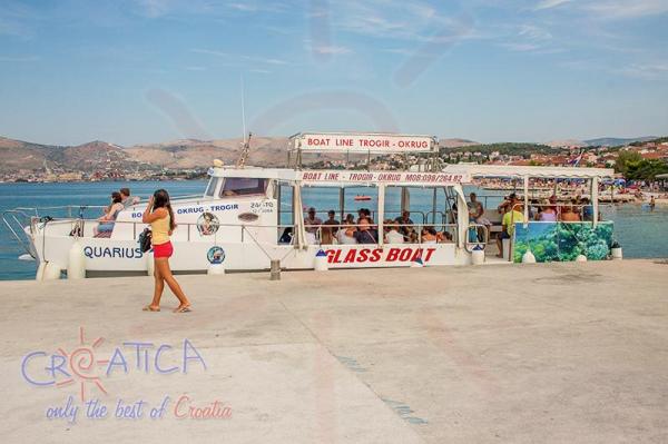 Turistička pristojba je uključena u cijenu. Šaljemo pismenu potvrdu rezervacije (voucher)Svim svojim gostima, uz obilje sunca i bistrog mora, nudimo raznolike rekreativne sadržaje. Škola ronjenja pruža mogućnost užitka u Ijepotama jadranskoga podmorja; fitnes centar s teniskim terenima oslobađa od svih stresova suvremenog života. Organiziraju se svakodnevni izleti malim brodicama u obližnje tihe uvale; iznajmlju se skuteri i provode letovi padobranima na mjesnoj plaži. Blizina Trogira (2 km), koji je pod zaštitom UNESCO-a, pruža mogućnost uživanja u 2800 godina staroj njegovoj jezgri, ali i mogućnost noćnih provoda. S otoka Čiova mogući su izleti na slapove Krke (60 km), u Split (33 km), u Međugorje (100km). Znacajno je da je Zracna luka Split od mjesta udaljena svega 8 km. Prilikom dolaska imate iznenađenje dobrodošlice.