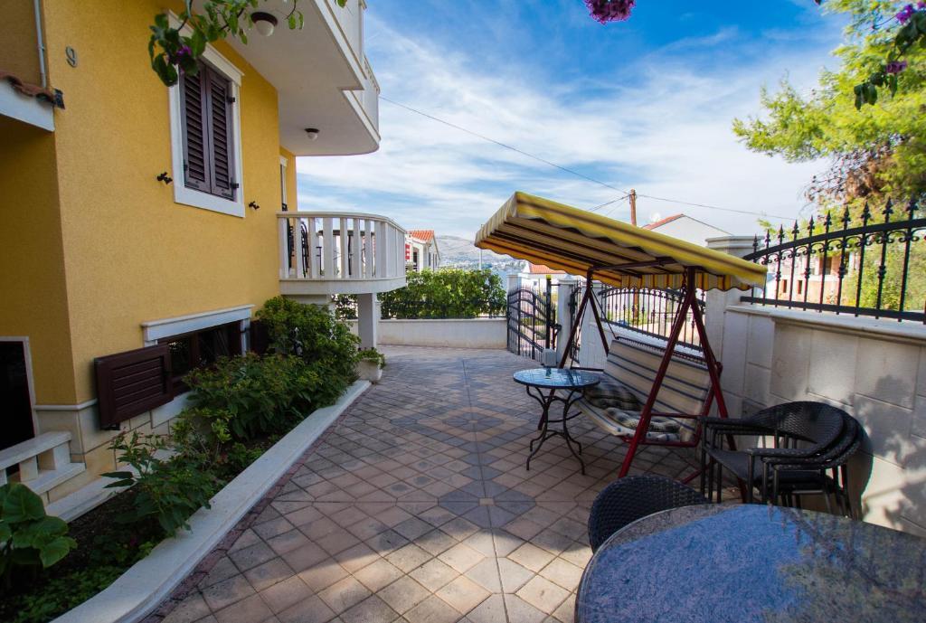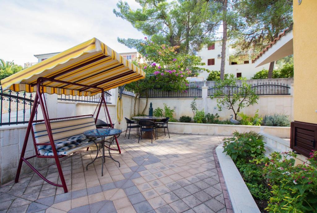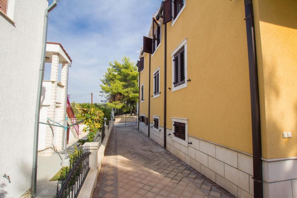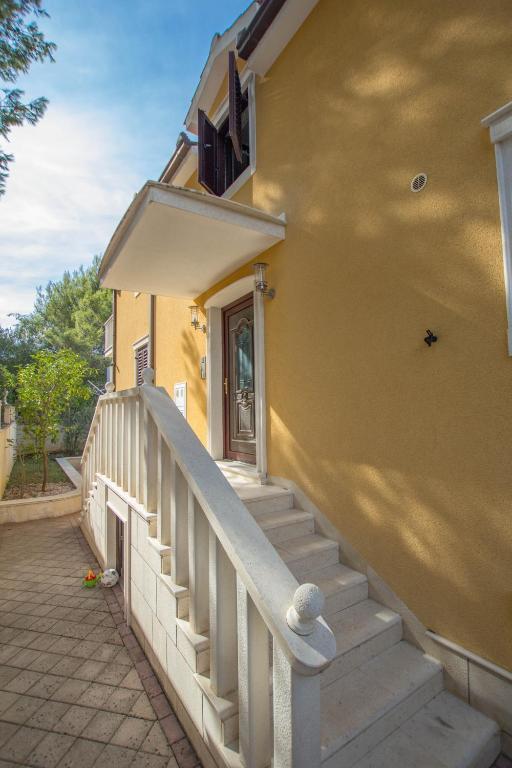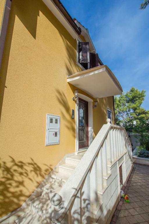 Apartmani Anika 1 i 2 nalaze se na otoku Čiovu u mirnom predjelu svega 50m udaljenosti od mora. Objekt se nalazi na 5 minuta hoda od prvih restorana, trgovina i zabavnih sadžaja. Apartmani se nalaze na 2. katu za koji gosti imaju poseban ulaz. Svaki se apartman sastoji od dvije spavaće sobe i kupaonice. Obje sobe su klimatizirane te imaju izlaz na terase sa pogledom na more i šumu. U sobama se nalazi i TV zajedno sa satelitskom televizijom te neograničenim pristupom internetu. Svaki apartman ima i svoju kuhinju koja je opremljena priborom za jelo za 6 osoba, hladnjakom, kuhalom za vodu, pećnicom i svime što je u kuhinji potrebno. Gosti apartmana u cijenu imaju uključen i parking. Na raspolaganju Vam je paviljon pod kojim se nalazi grill te veliki stol za 12 osoba idealan za zajedniče obroke i druženja. Pod paviljonom se također nalazi i ljuljačka, te mala ljuljačka za djecu.