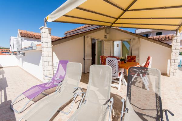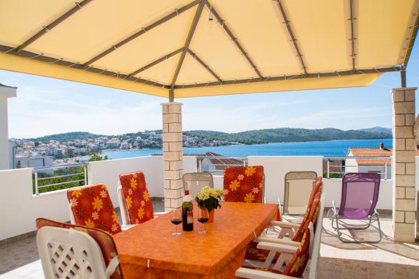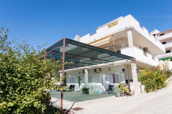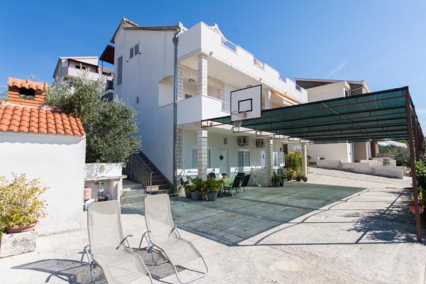 Kuća obitelji Miše smještena je u Okrugu Gornjem, udaljena od Trogira 2 km. U kući se nalazi apartman za 4 1 osobu, te soba s kupaonicom za 2 osobe. Za veći broj gostiju, moguće je iznajmiti apartman i sobu zajedno. Obiteljska kuća je udaljena 100 m od plaže i mora. (plaža je na početku ulice) Apartman i soba nalaze se u prizemlju, kompletno opremljeni i opskrbljeni klima uređajem, SAT TV-om i Wireless Internet pristupom. Gostima je osiguran parking i korištenje grilla.