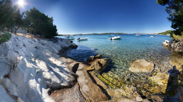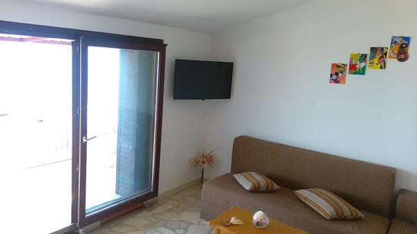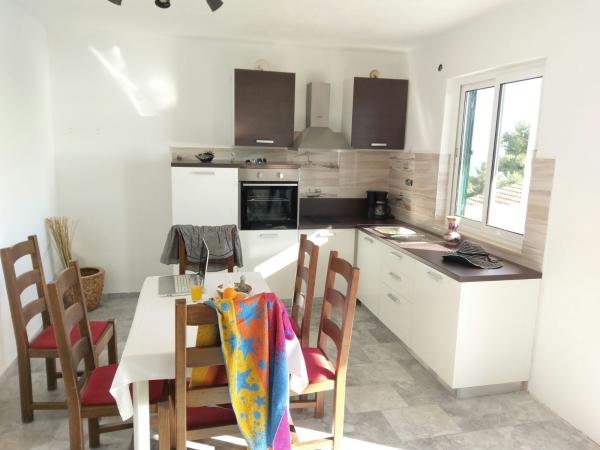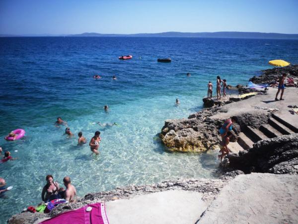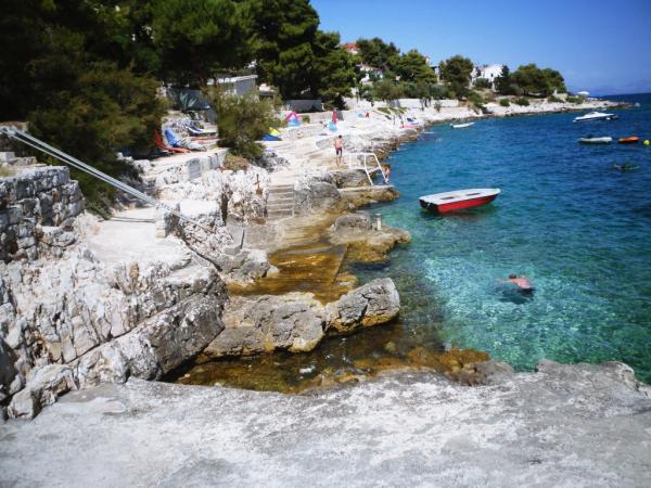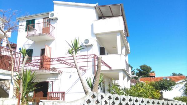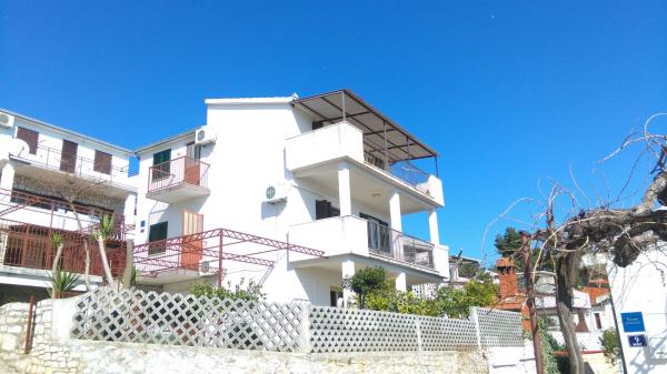 Apartmani su smješteni u obiteljskoj kući na samo 15 m od plaže u mirnom mjestu Okrug Gornji na poluotoku Čiovo udaljeni 5 km od Trogira i 10km od Splitske zračne luke. Objekt nudi 2 klimatizirana apartmana atraktivnog pogleda na more s privatnim balkonima, besplatnim parkingom te zasebnim ulazima. Izvrsna pozicija - drugi red do mora na južnoj strani Čiova okružena je prekrasnim plažama i savršeno čistim morem koju obasjava čak 2570 sunčanih sati godišnje. Apartmani ujedno nude osim besplatnog korištenja flat wi-fi interneta, Air Conditioninga i korištenje vanjskog tuša te vanjskog kamina po dogovoru.