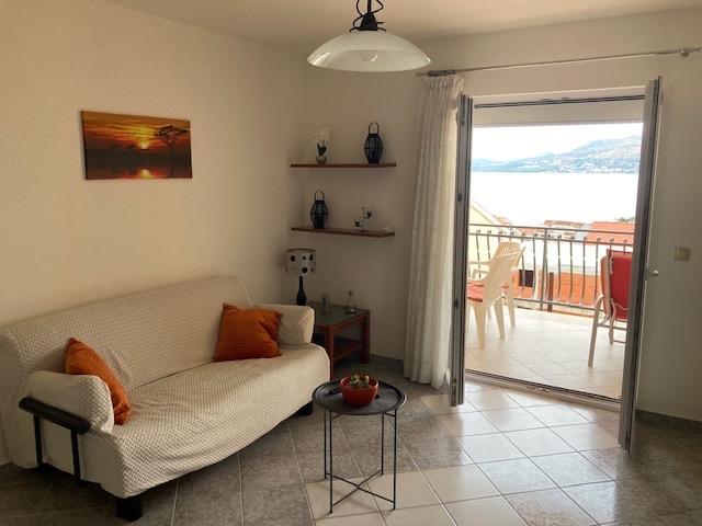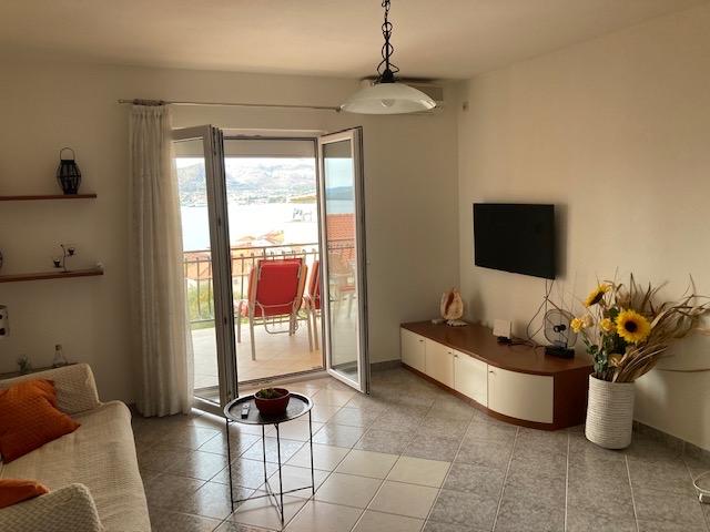 Lijepo uredjen apartman u Okrug Gornji na Ciovu sa kompletno opremljenom kuhinjom, spavacom sobom i dnevnom sobom sa izlazom na veliku lodju i predivnim pogledom na more i Ciovski zaljev. U dnevnoj sobi se nalazi udobna sofa na razvlacenje gdje mogu spavati 2 djece. Apartman se nalazi na 2 etazi zgrade u centru mjesta, 5 min setnje do predivne sljuncane plaze zvane Copacabana. Apartman posjeduje jedno parkirno mjesto u dvoristu zgrade.