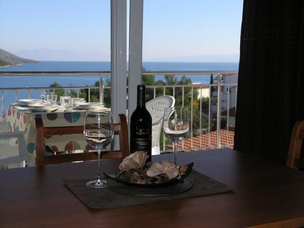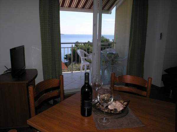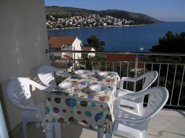 Sa zadovoljstvom vam predstavljamo naša četiri apartmana koja se nalaze na južnoj strani otoka Čiovo u neposrednoj blizini grada Trogira u Okrugu Gornjem. To je jedna od najatraktivnijih turističkih destinacija u Hrvatskoj s 2670 sunčanih sati godišnje. Blizina grada Trogira (2 km) i Splita (30 km) koji su pod zaštitom UNESCO-a, pruža mogućnost otkrivanja preko 2000 godina stare kulture. Vi ste dobrodošli u našim apartmanima s prekrasnim pogledom na srednje-dalmatinske otoke Brač i Šolta, gdje ćete pronaći opuštajuću atmosferu ispunjenu komforom i privatnošću. Moderno uređeni i klimatizirani dvosobni apartmani Luce i Maja te jednosobni apartmani Marin i DUJE nude ugodan boravak gostima. U neposrednoj blizini šljunčane plaže (80 m), s prekrasnim pogledom na Jadransko more. Svi apartmani su kompletno opremljeni SATV, WiFi flat rate internet vezu sve uključeno u cijenu. Standardna oprema uključuje posteljinu, ručnike, kuhinjske krpe.Voda u kući je pitka voda iz slavine. Privatno parkirno mjesto je na raspolaganju (1 po apartmanu). Srdačno ste pozvani da provedete svoj odmor u našim apartmanima, da uživate u mediteranskom okruženju i lijepo kristalno čistom moru ..