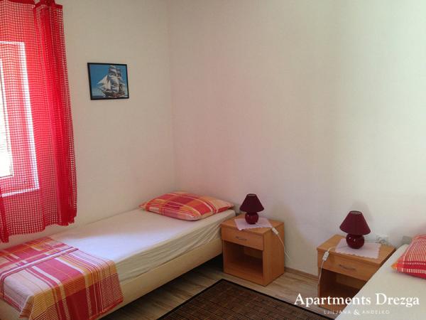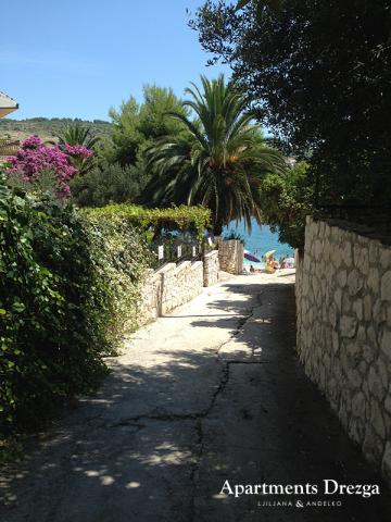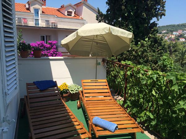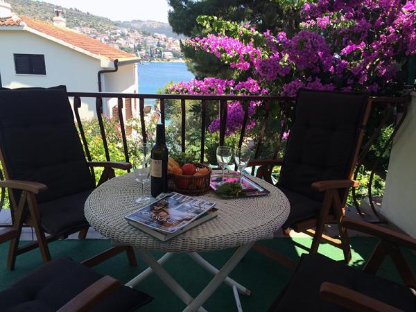 Kompletno opremljeni apartmani, smješteni drugi red do mora. Apartman u prizemlju ima dvije spavaće sobe a apartman na katu ima 3 spavaće sobe. Svaki apartman ima svoju veliku terasu. Objekt se nalazi 20 m od plaže pogodne za malu djecu i neplivače. U blizini se nalazi ronilačka škola, a 15 min hoda smo udaljeni od malog centra sa poštom, apotekom, kafićima, trgovinom, liječnikom i malom tržnicom. 4 km od apartmana nalazi se Trogir, grad muzej pod zaštitom UNESCA.