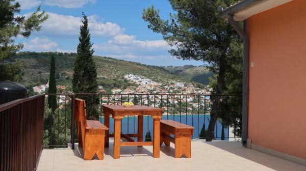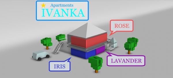 Apartmani Ivanka se nalaze u Okrugu Gornjem, na mirnom i opuštajućem mjestu na južnoj strani otoka Čiova. Mjesto je pogodno za šetnju po predivnim plažama i uživanju na suncu satima. Apartmani Ivanka su udaljeni 5 km od povijesnog grada Trogira i 10 km od međunarodne zračne luke Split. Apartman je udaljen 5 minuta hoda od plaže. Nalazimo se u mirnom susjedstvu što Vam nudi priliku da se opustite i uživate u ljetovanju. Trgovina, restoran, renta car...se nalaze 1 minutu pješice od apartmana. Svi apartmani su opremljeni sa klima uređajem, Wi-Fi internetom i kabelskom televizijom.