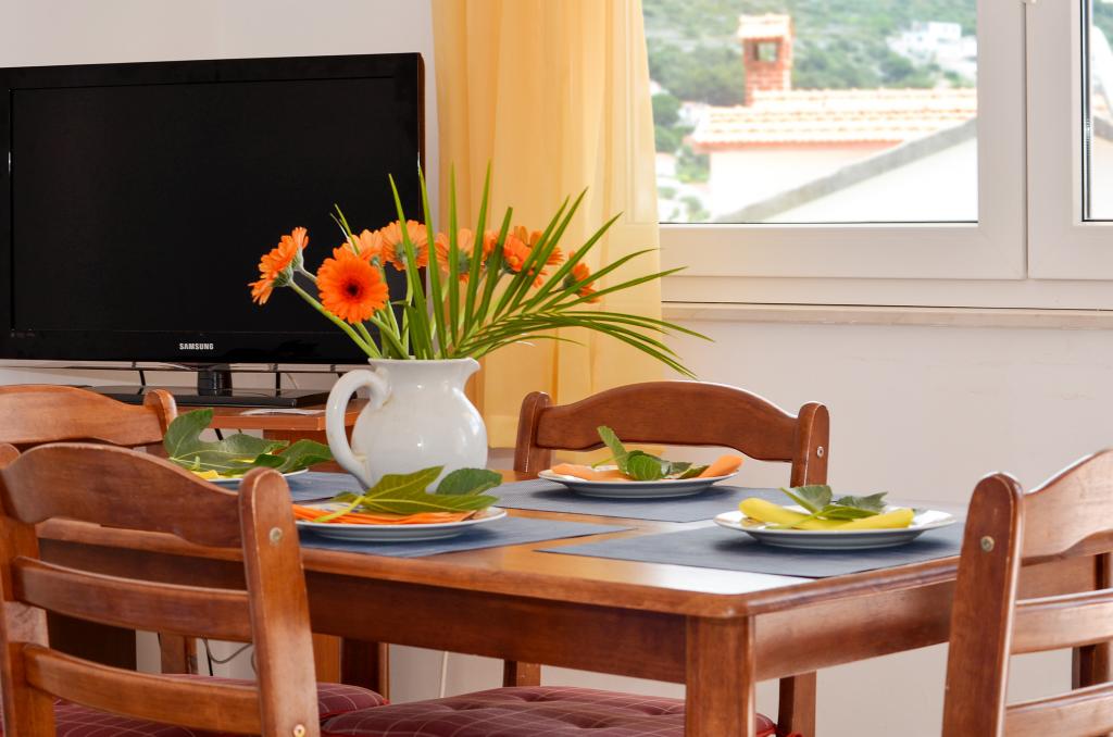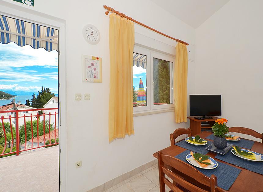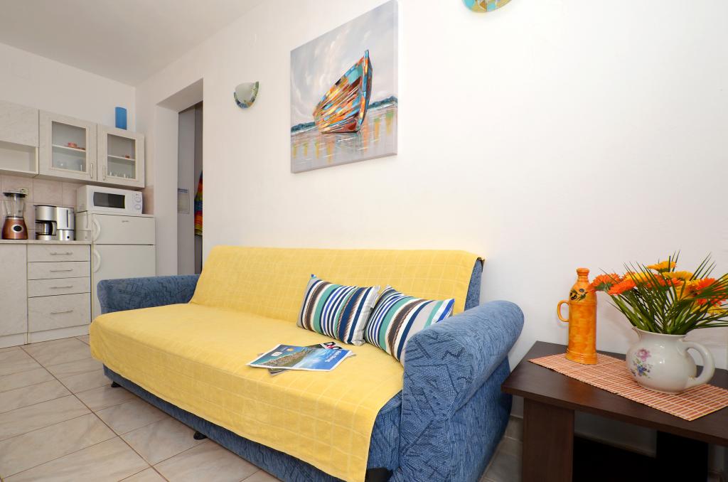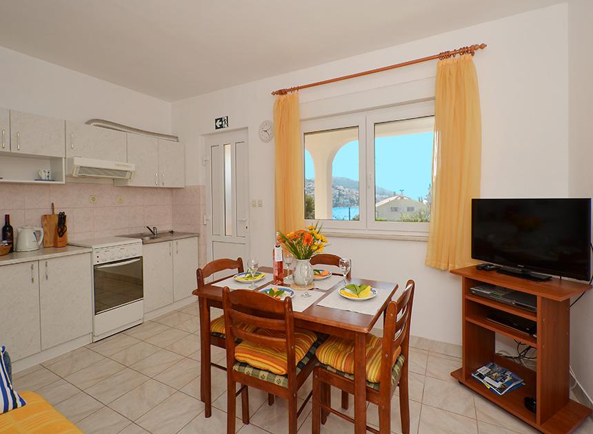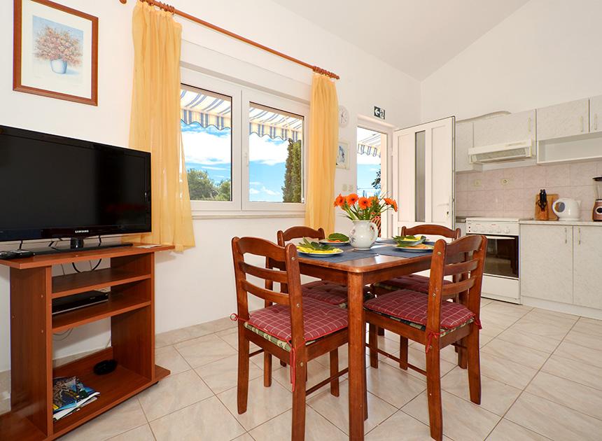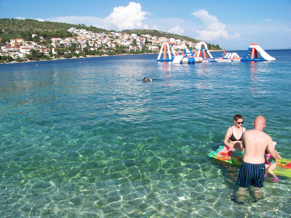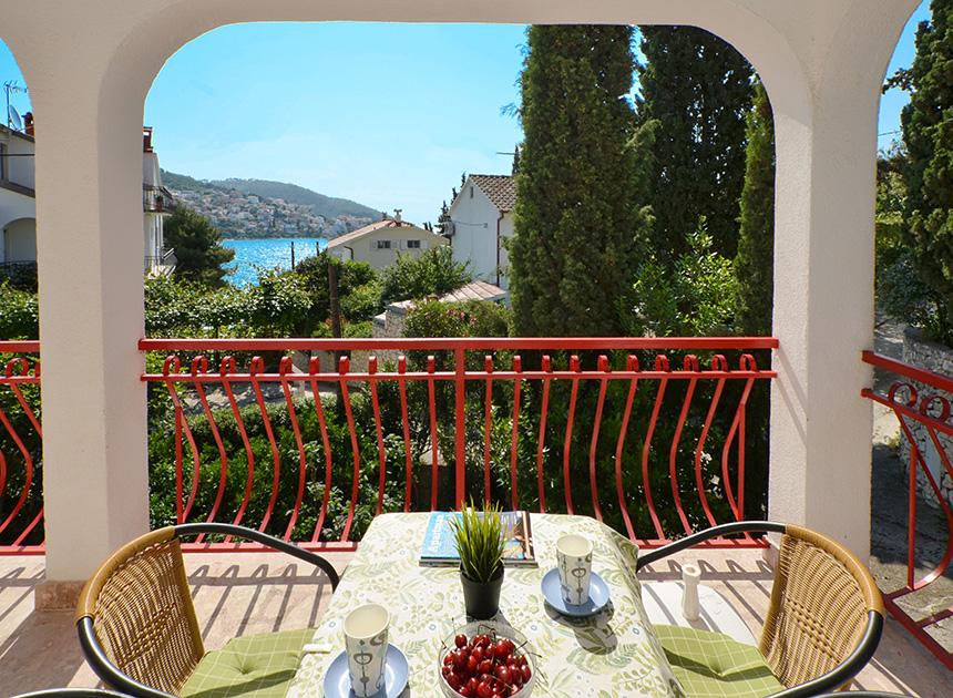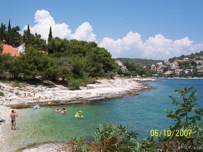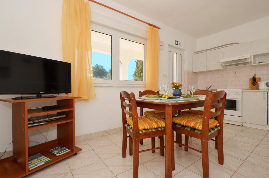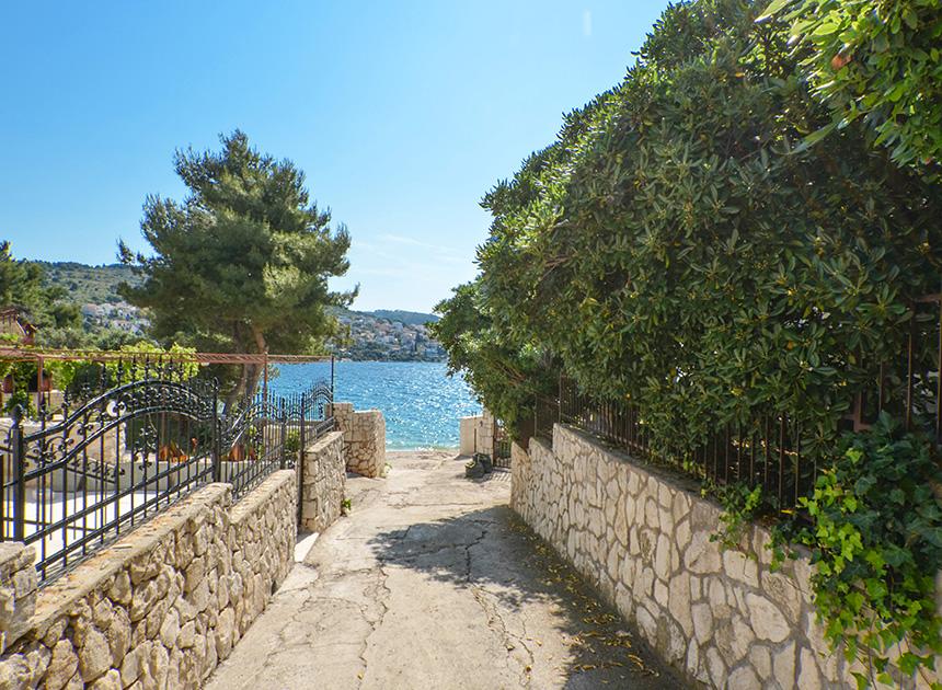 Čiovo, južna strana, uvala Mavarštica, iznajmljujemo nove apartmane za 3-4 osobe, SAT LED Samsung TV 32 (82 cm), DVD, Microwave, Blender, Air Condition, Wi-fi brzi optički internet. Svi apartmani imaju svoje parkirna mjesta u sjeni, grill, udaljeni su samo 50 m od plaže (na slici), primjereno i za manju djecu. Apartmani su udaljeni 4. km od Trogira, grada spomenika pod zaštitom UNESCA. Svi apartmani imaju veliku terasu s pogledom na more i još jedan balkon u spavaćoj sobi. Udaljenost do najbližeg restorana je 70 m. Udaljenost do aqua parka je 100 m. Udaljenost do najbliže trgovine je samo 400 m. Do najbliže ljekarne, bankomata, velikog supermarketa, tržnice i bankomata je 900 m. Na raspolaganju su vam besplatno: vrtna ljuljačka, velika dječja drvena ljuljačka, dodatni vrtni tuš, klupa pored roštilja, suncobran za terasu. Gosti imaju u dvorištu na raspolaganju Sponeta stol za stolni tenis sa setom reketa i elektronski pikado. Na Smart TV je moguće praćenje poljskih, njemačkih, engleskih, francuskih, španjolskih, talijanskih... free to air SAT programa te je također instalirana aplikacija GoNet TV (Lepša TV) koja omogućuje gostima praćenje slovenskih, čeških, slovačkih, madžarskih i ukrajinskih programa.